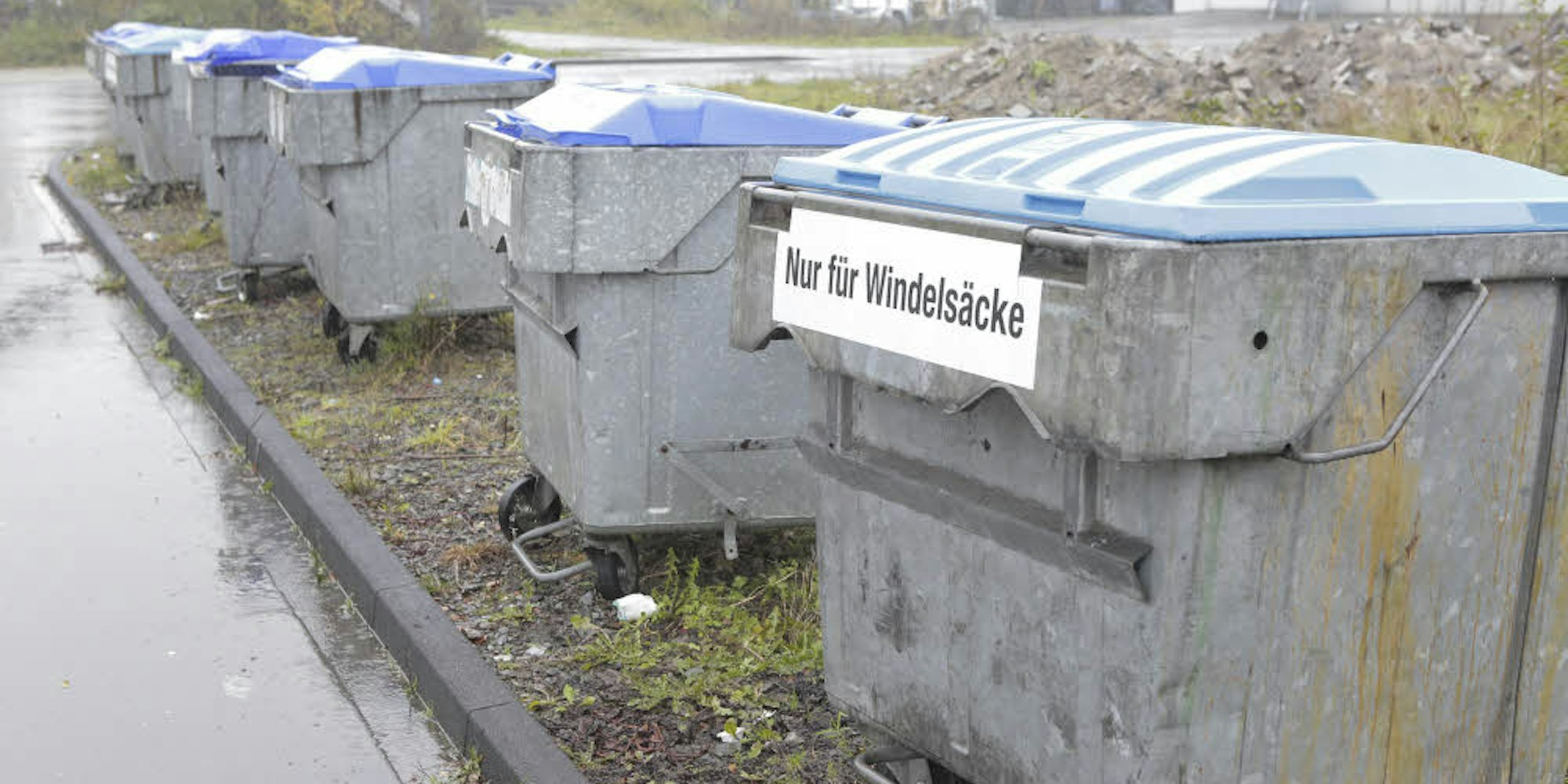 Hier ist nicht die Rede von einem kleinen Mini-Windelcontainer am Wipperfürther Baubetriebshof. Vor dem Eingangstor hat der Verband ASTO zehn große Sammelcontainer aufgestellt, jeder mit einem Volumen von 1000 Litern, richtig große Behältnisse. „Nach einem Wochenende sind alle voll, und vieles steht noch vor den Containern“, sagt Rösner. Die Dimension, über die hier gesprochen werden müsse, sei gewaltig.