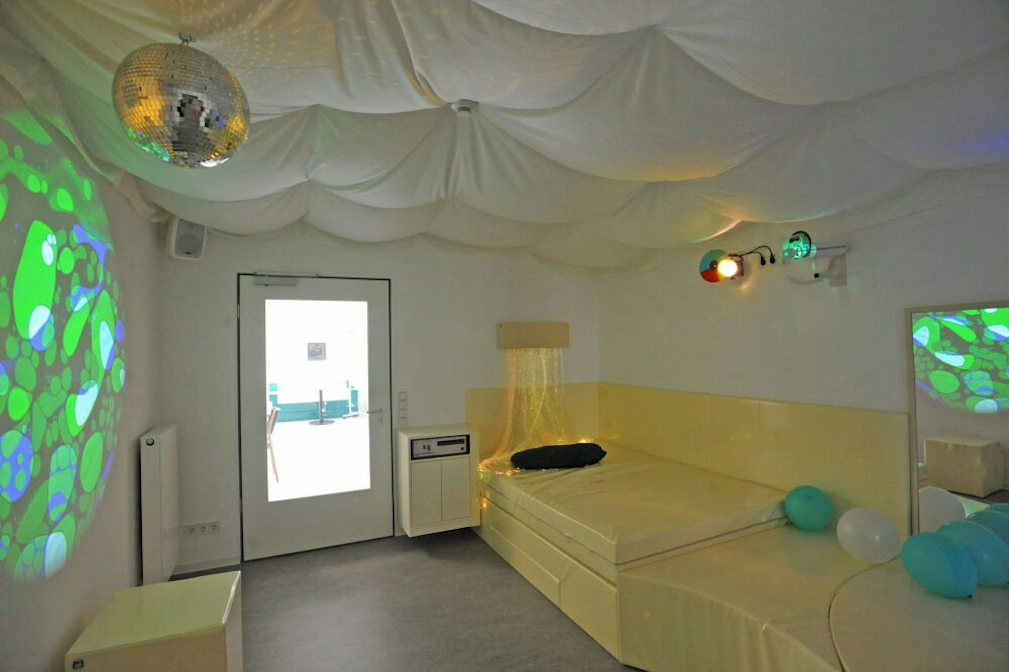 Der Snoezelraum mit Lichtspielen und Wasserbett dient der Entspannung und Ruhe.