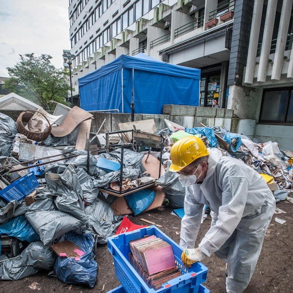 Hilfskräfte aus der Region sind angereist, um Leichlingen zu unterstützen. Den ersten Notfallverbund zwischen Archiven im Rheinland gründeten 2013 die Städte Leverkusen, Langenfeld und Monheim mit Leichlingen. Nun kommt er zum ersten Mal in größeren Umfang zum Einsatz. Auch Fachpersonal aus den Restaurierungswerkstätten des Landesarchivs und vom Landschaftsverband Rheinland helfen vor Ort.