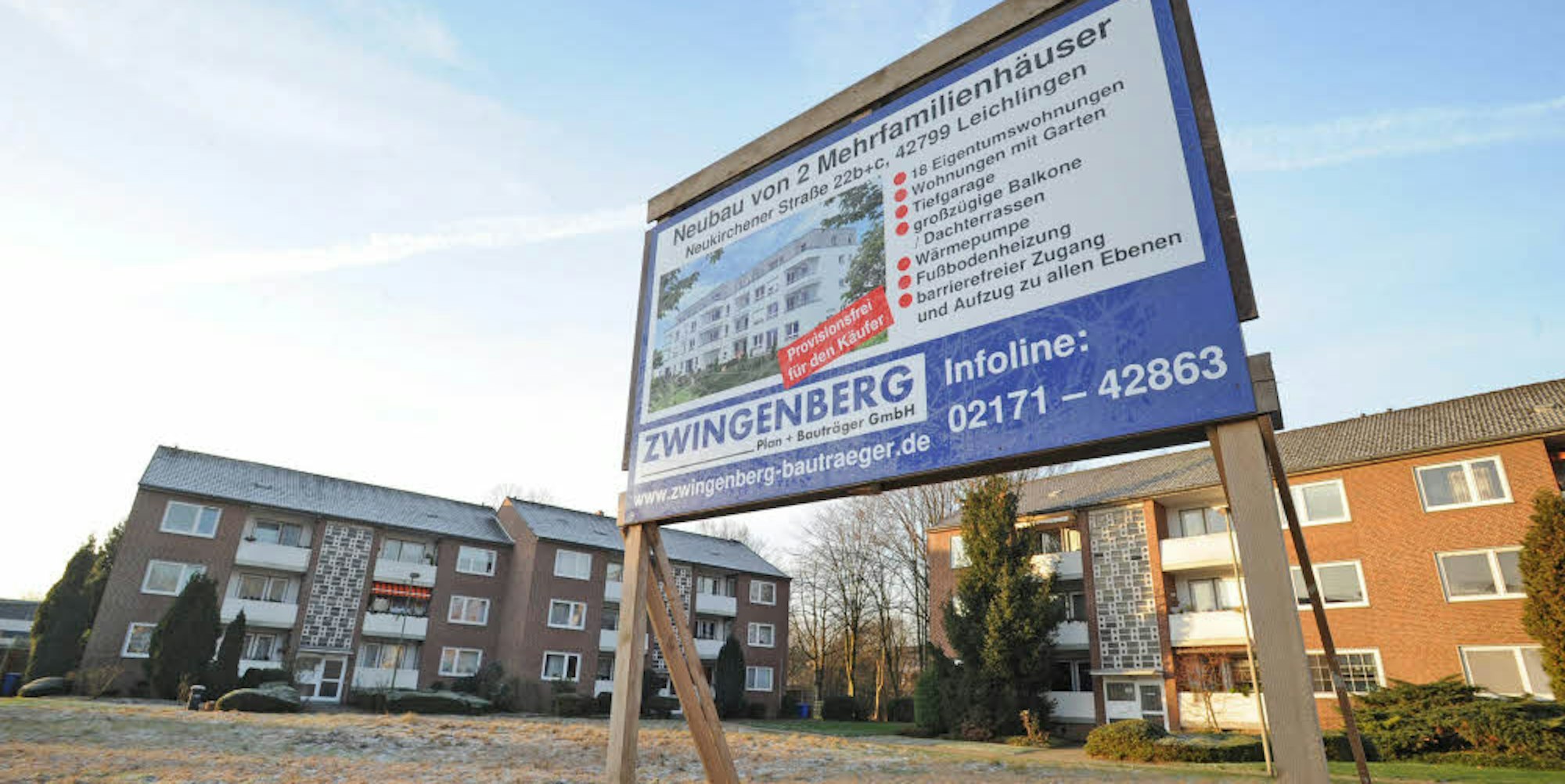 Die Bauträger-GmbH des Leichlinger Architekten Benjamin Zwingenberg errichtet auf dem Grundstück gegenüber des Hochhauses zwei Mehrfamilienhäuser mit 20 Eigentumswohnungen. Ein Bauschild steht schon auf der Wiese, die bisher zur Siedlung Cremers Weiden gehörte.