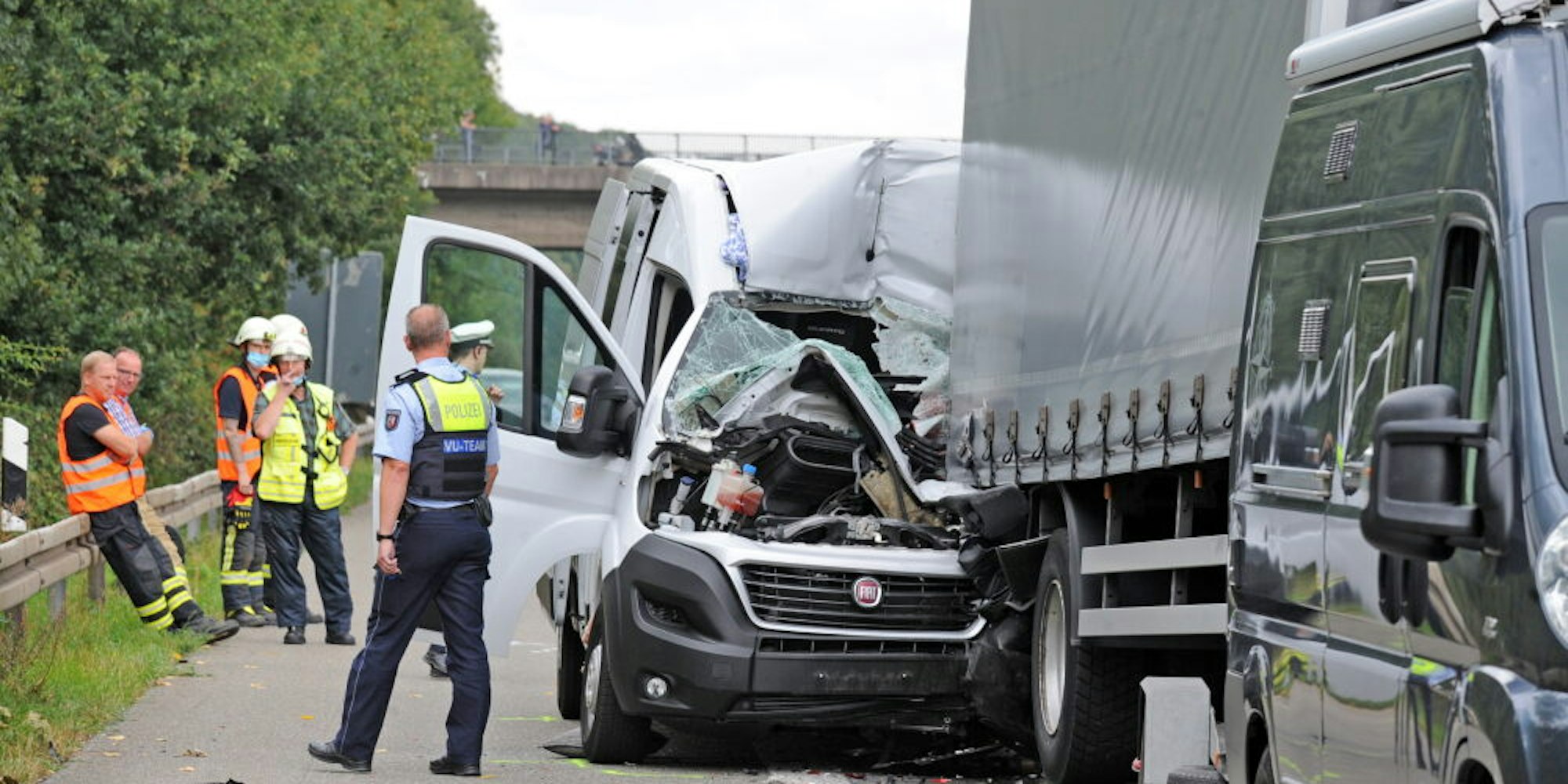 Auf der A 1 starb bei Burscheid im September der Fahrer dieses Transporters, der im Stau auf einen Lkw aufgefahren war.