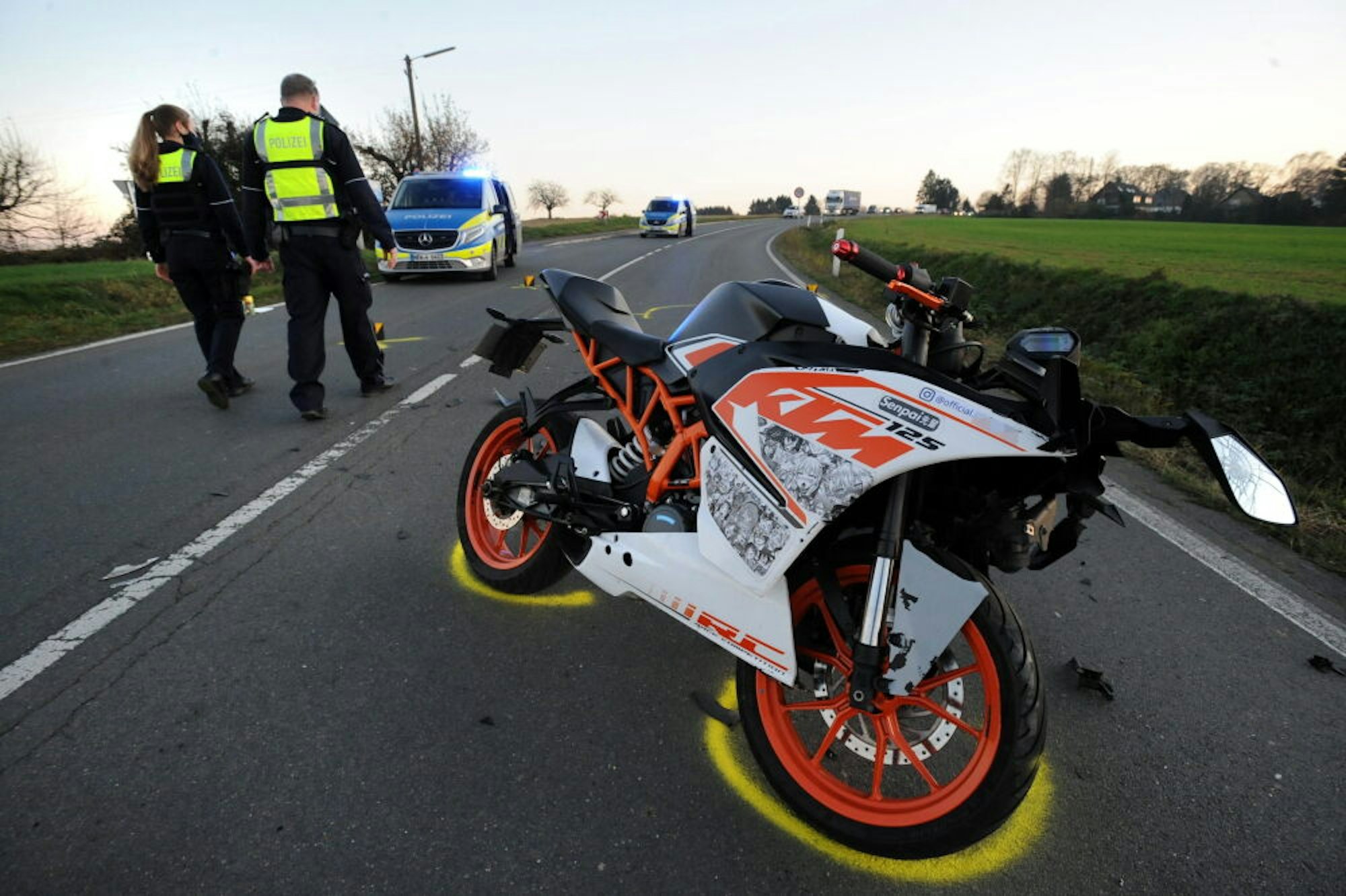 Die Zahl der verunglückten Motorrad-Fahrer nahm 2020 im Kreisgebiet um 20 Prozent zu. Bei diesem Unfall in Kuhle zwischen Hilgen und Witzhelden wurde ein 16-jähriger KTM-Fahrer schwer verletzt.