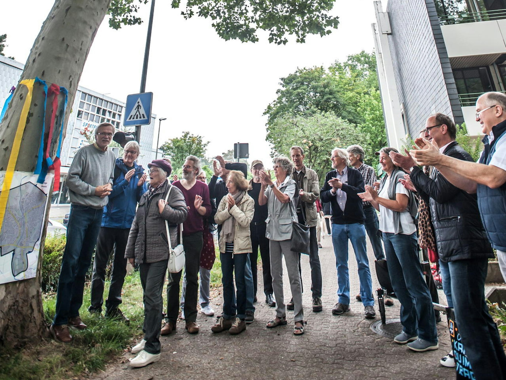 Leichlingen – Ein weiteres Jahr durfte die Platane am Fußgänger-Überweg vor dem Rathaus länger leben. Ein Ereignis, das von den engagierten Umweltschützern von „Future for Leichlingen“ fast wie ein Geburtstag zelebriert wird. Aufgrund von vier Unfällen war die Platane 2018 in das Visier der Unfallkommission geraten und sollte aus Sicherheitsgründen gefällt werden. Nachdem auf der Neukirchener Straße allerdings eine Tempo-30-Zone errichtet wurde, blieben weitere Unfälle aus. „Auch die Unfallkommission hat eingesehen, dass scheinbar nicht der Baum die Ursache für die Unfälle war“, meint Günter Weber, der sich mit einigen anderen Leichlingern für die Zukunft der Platane stark gemacht hatte und betonte, dass wegen Unachtsamkeit oder falscher Planung keine Bäume mehr gefällt werden dürften.