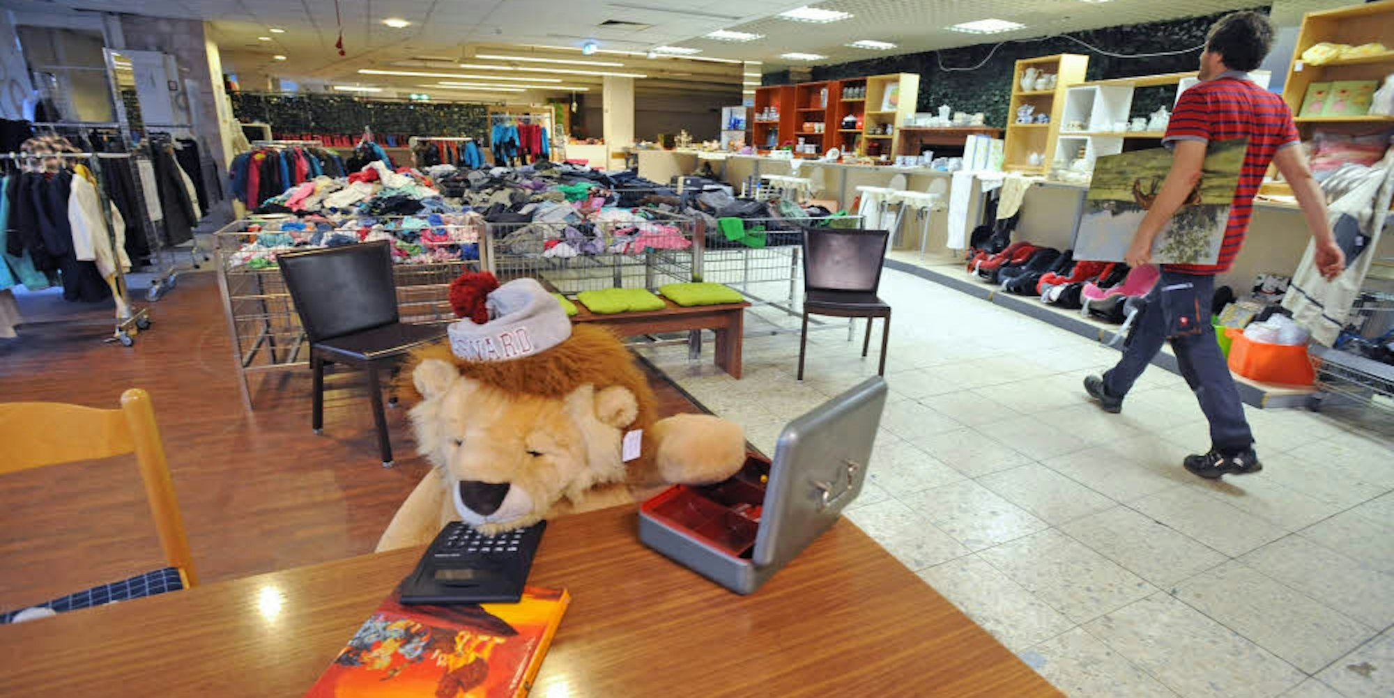Kleidung und Porzellan, Hausrat, Bücher, Bilder und andere gespendete Dinge gibt es im Leichlinger Sozialkaufhaus Globolus im Erdgeschoss des früheren Kaufparks für kleines Geld.