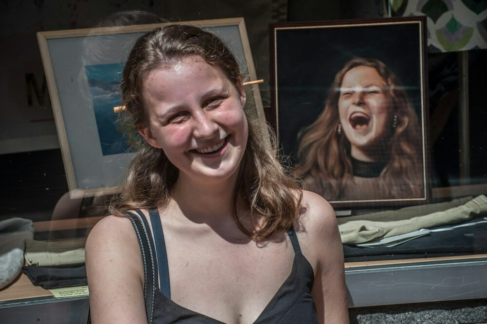 Mit ihrem fotorealistischen Selbstporträt im Schaufenster von „Mode Bach“ konnte Cara Wilmanns beeindrucken.