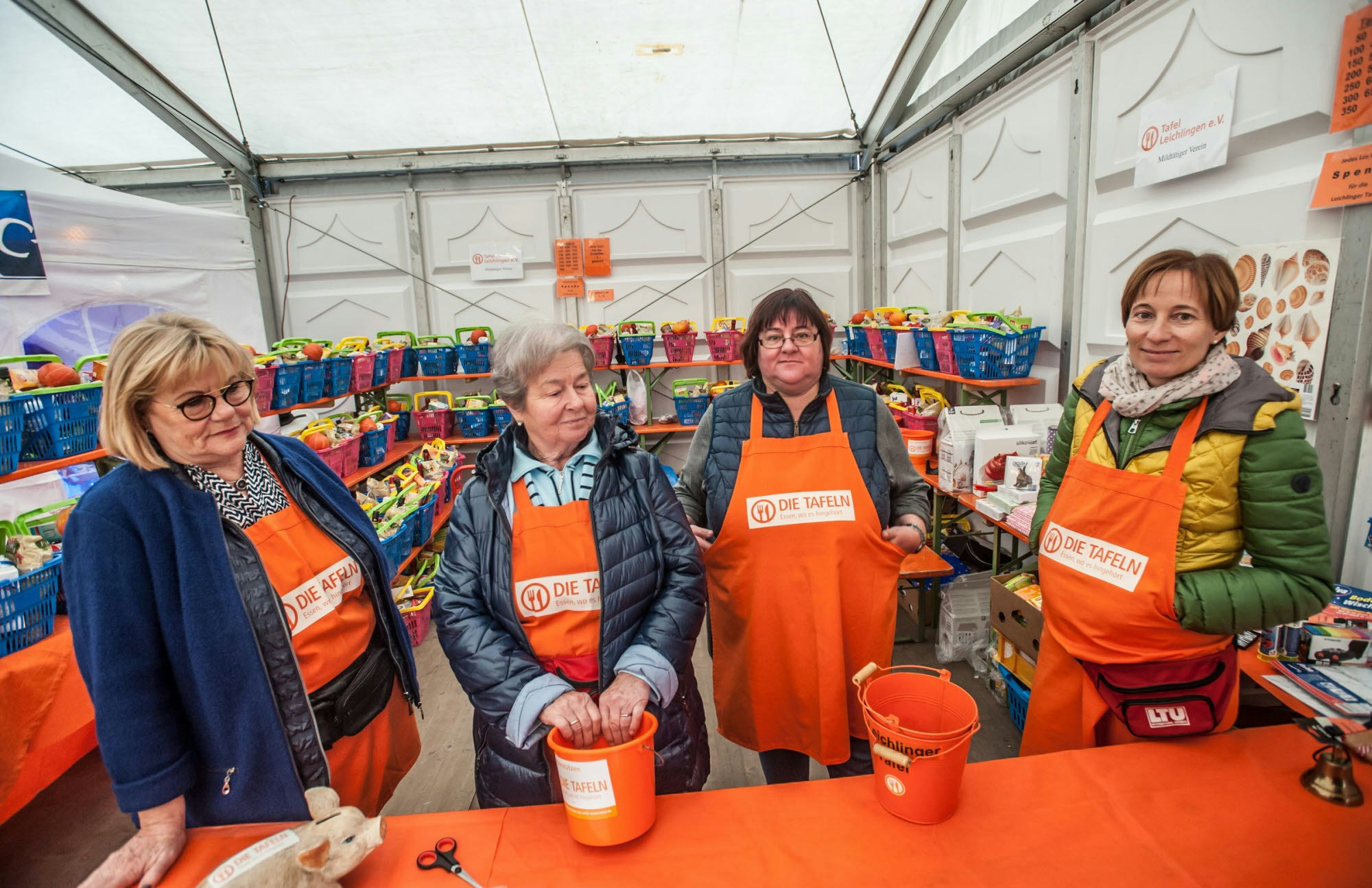 Beim Leichlinger Obstmarkt haben die Helferinnen der Tafel 250 Präsentkörbe verlost.
