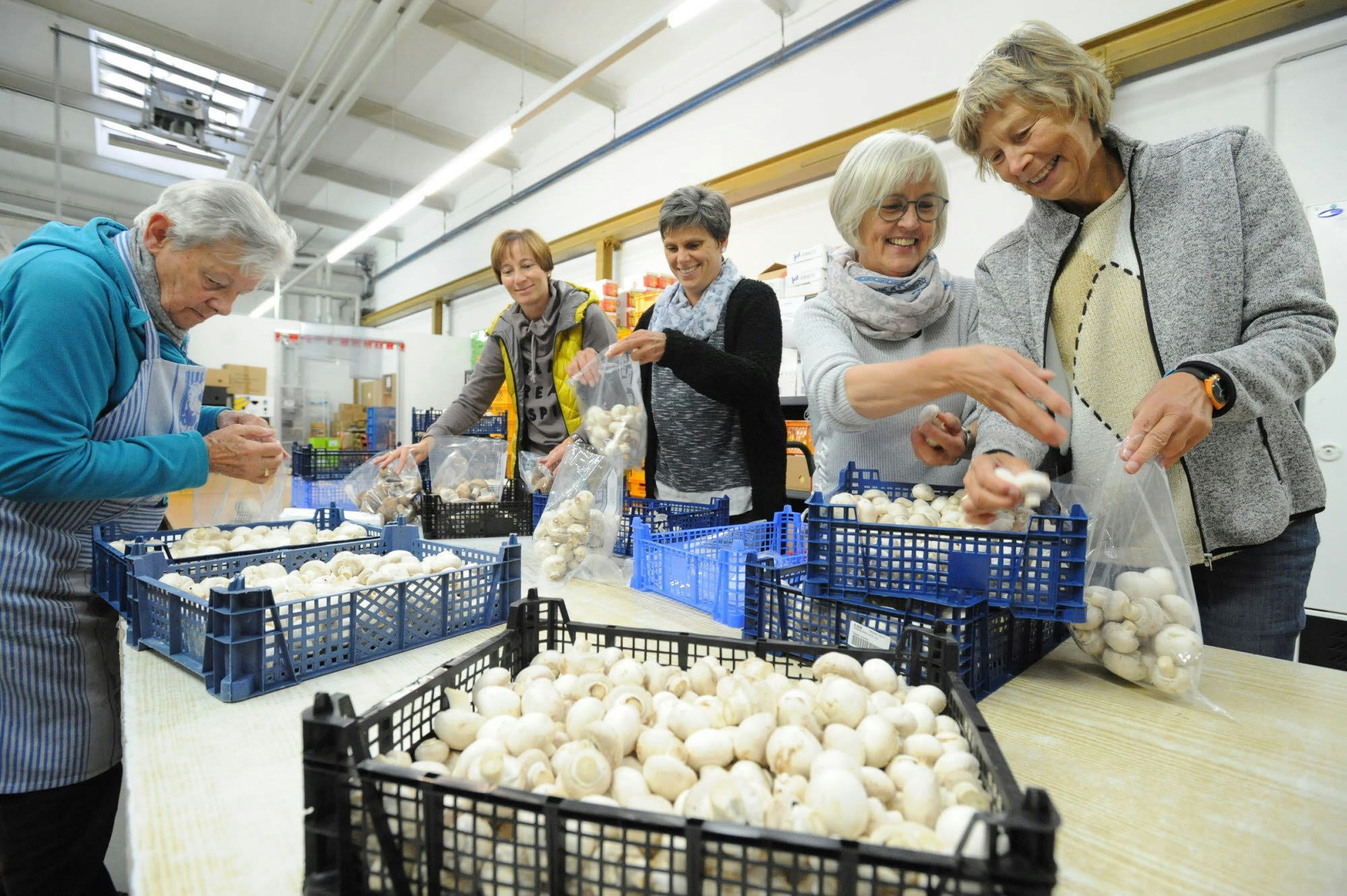 Am Donnerstag traf bei der Tafel eine Riesenladung Champignons ein, die Züchter Peter Marseille gespendet hat.