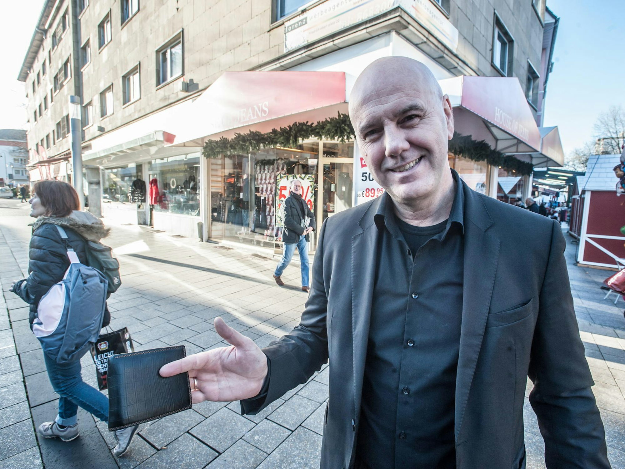 „Der“ – das ist Giovanni Alecci, Zauberkünstler und Taschendieb aus Leichlingen. Alecci steht an diesem Vormittag in der Fußgängerzone in Wiesdorf. Passanten eilen vorbei, schleppen Einkäufe oder bummeln. Sie haben rote Taschen an den Kinderwagen gehängt, tragen Öko-Baumwolltaschen über der Schulter oder schieben ihre Einkäufe in ihrem Rollator vor sich her.