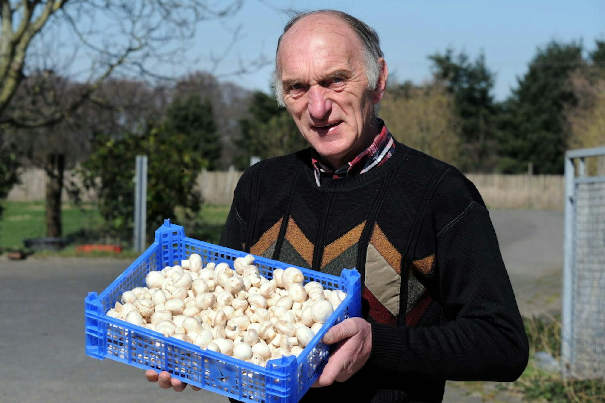 Pilzzüchter Peter Marseille verkauft seine Ware direkt auf seinem Hof in Bergerhof.