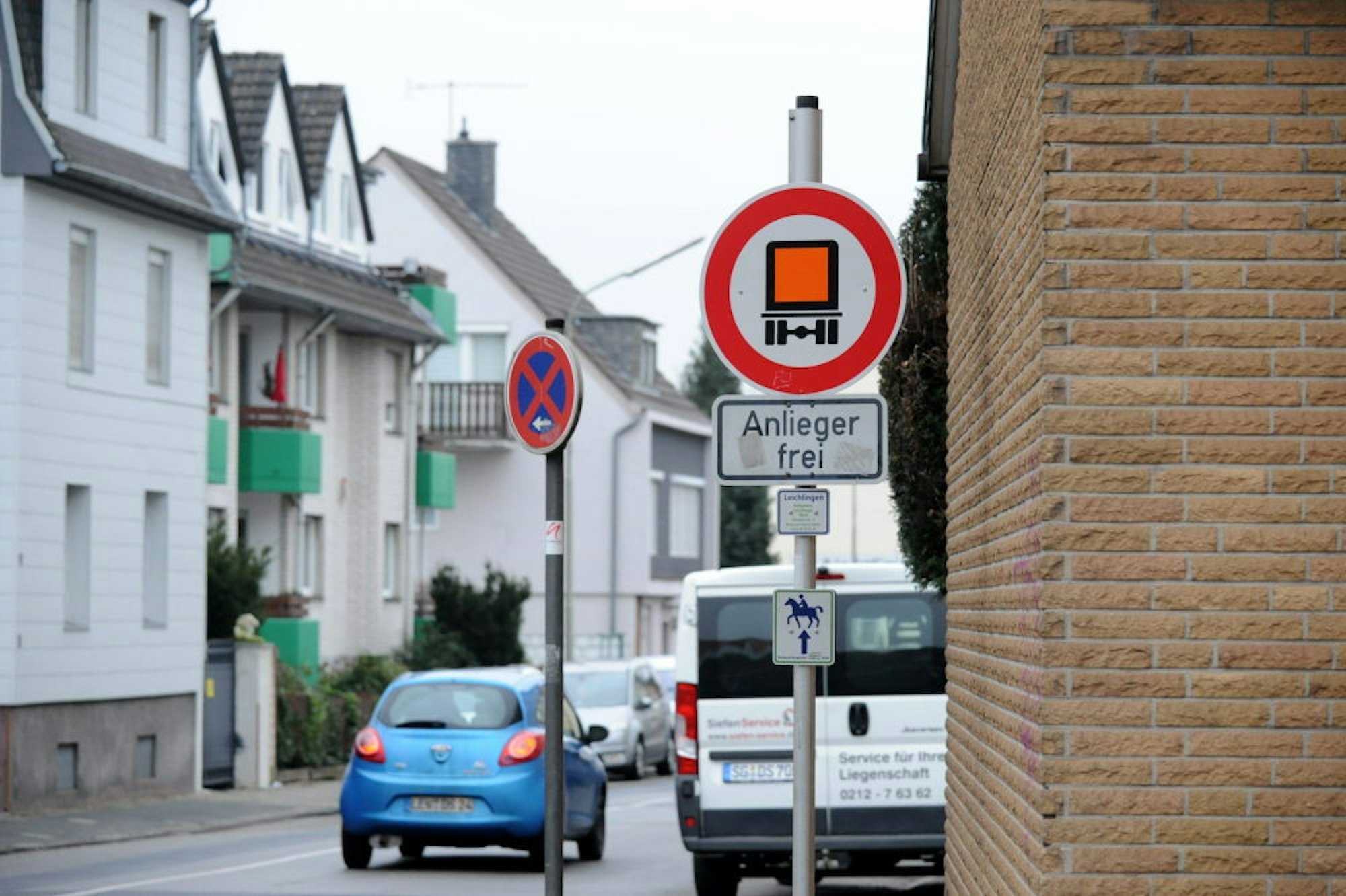 Für Gefahrgüter sind einige Leichlinger Straßen gesperrt - hier ein Warnschild an der Hochstraße.