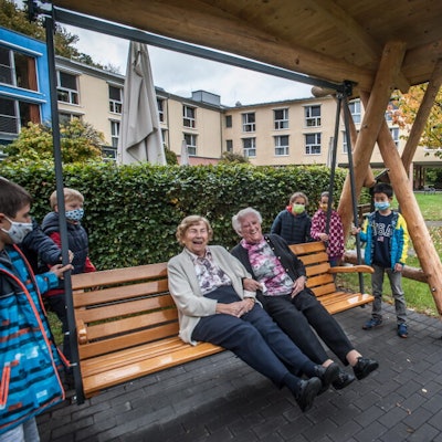 Mit einer weiteren Überraschung warteten Kinder der Schule Flamerscheid auf: 140 Jungen und Mädchen aus sieben Klassen haben Lichtstreifen gebastelt, welche die Fenster der Senioren-Wohnungen und -Zimmer bunt leuchten lassen.
