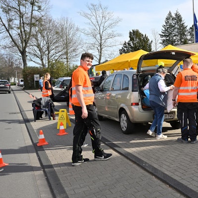 Der Sattelzug mit den bei einem Spenden-Drive-In vor der Johannes-Gutenberg-Realschule in Bensberg gesammelten Lebensmitteln ist nur einer von insgesamt acht, die sich knapp vier Tage zuvor zusammen mit einem Möbelwagen und einem Begleit-Gespann von Overath aus auf den Weg ins rumänische Sibiu und von dort weiter bis an die auf diesem Weg mehr als 2000 Kilometer entfernte ukrainische Grenze gemacht haben. Mit einigen Hindernissen.