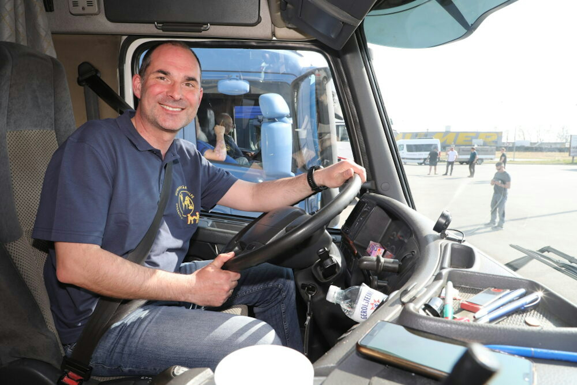 Fuhrunternehmer Heinz-Willi Mürkens stellt schließlich neben der bereits avisierten eine weitere Zugmaschine zur Verfügung, die allerdings bereits seit längerem abgemeldet war. In Windeseile wird sie wieder flott gemacht und durch die technische Abnahme gebracht.