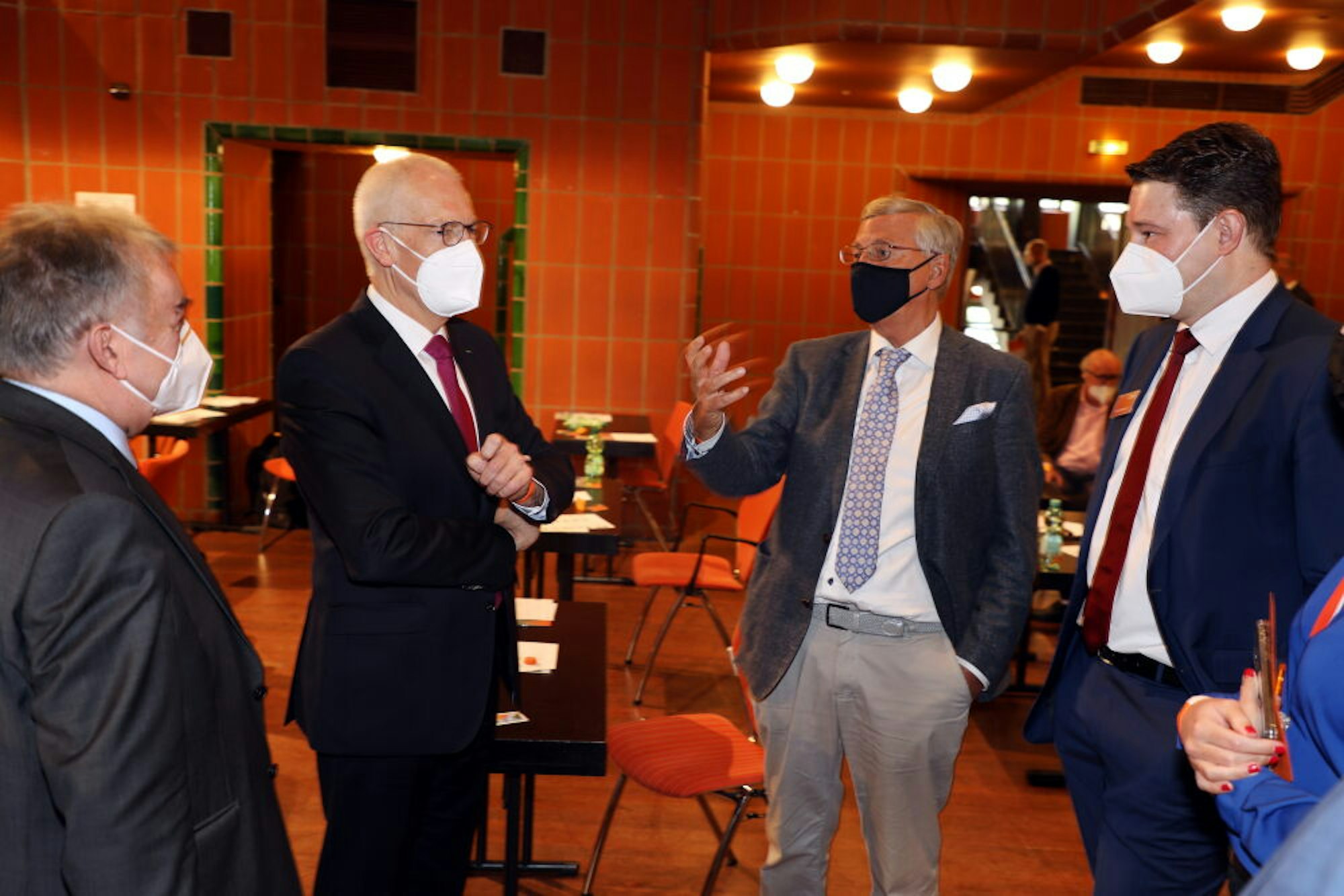 Im Gespräch: (v.l.) NRW-Innenminister Herbert Reul, MdB Hermann-Josef Tebroke, Wolfgang Bosbach, Kreisparteichef Uwe Pakendorf.