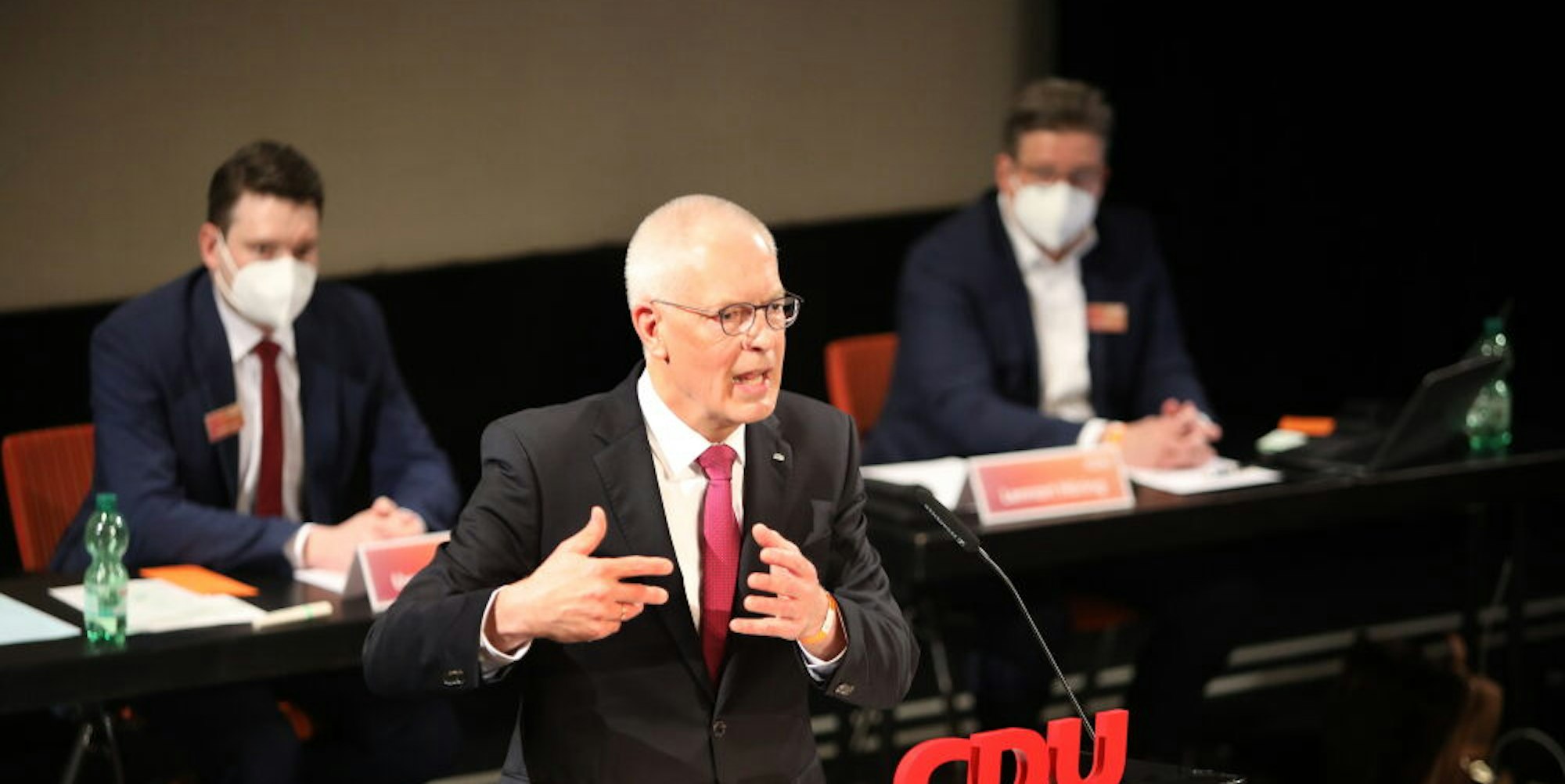 „Ja, wir haben nicht alles sofort 100-prozentig richtig gemacht“, bekannte Tebroke mit Blick auf die Corona-Pandemiebekämpfung und räumte Versäumnisse etwa bei der Beschaffung von Impfstoffen und bei den Hilfsprogrammen ein. Nun gelte es, so der Bewerber, aus den Fehlern zu lernen, sie aber nicht denen nachzutragen, die wohlgemeint, gut überlegt eine Entscheidung in der Krise getroffen hätten. Nötig sei vielmehr eine Fehlerkultur, man müsse Menschen auch in unsicheren Zeiten Mut machen zu entscheiden. „Es kann auch etwas danebengehen, es darf nur nicht ein zweites Mal passieren.“ „Wir können Krise“, zeigte sich Tebroke überzeugt und verwies auch auf die Solidarität vieler Menschen in der Pandemie, den großen Einsatz von Pflegekräften und Medizinern.