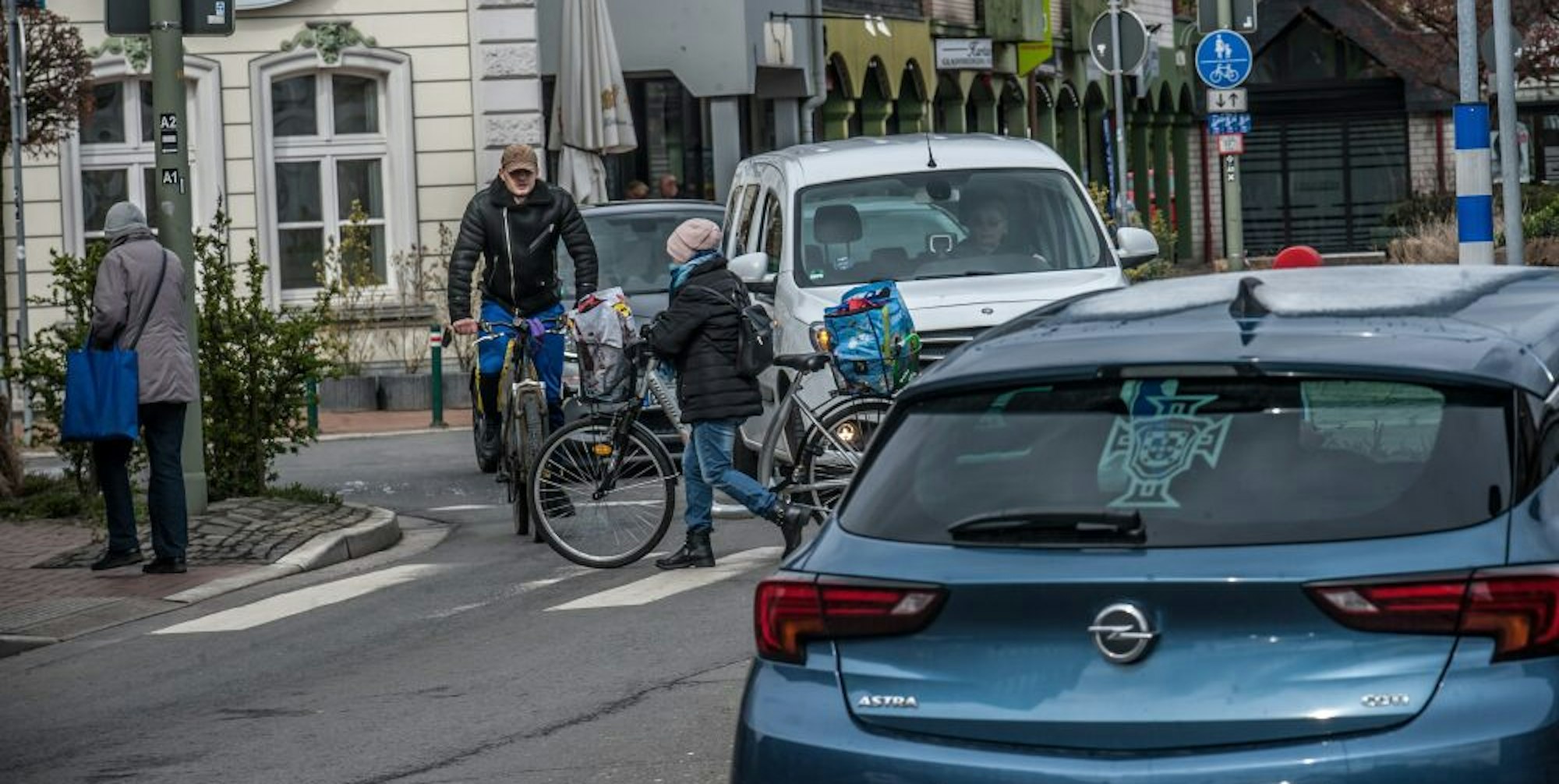 Rad- und Autofahrer, Busverkehr und Fußgänger treffen in der Stadt und im Leichlinger Mobilitätskonzept aufeinander.