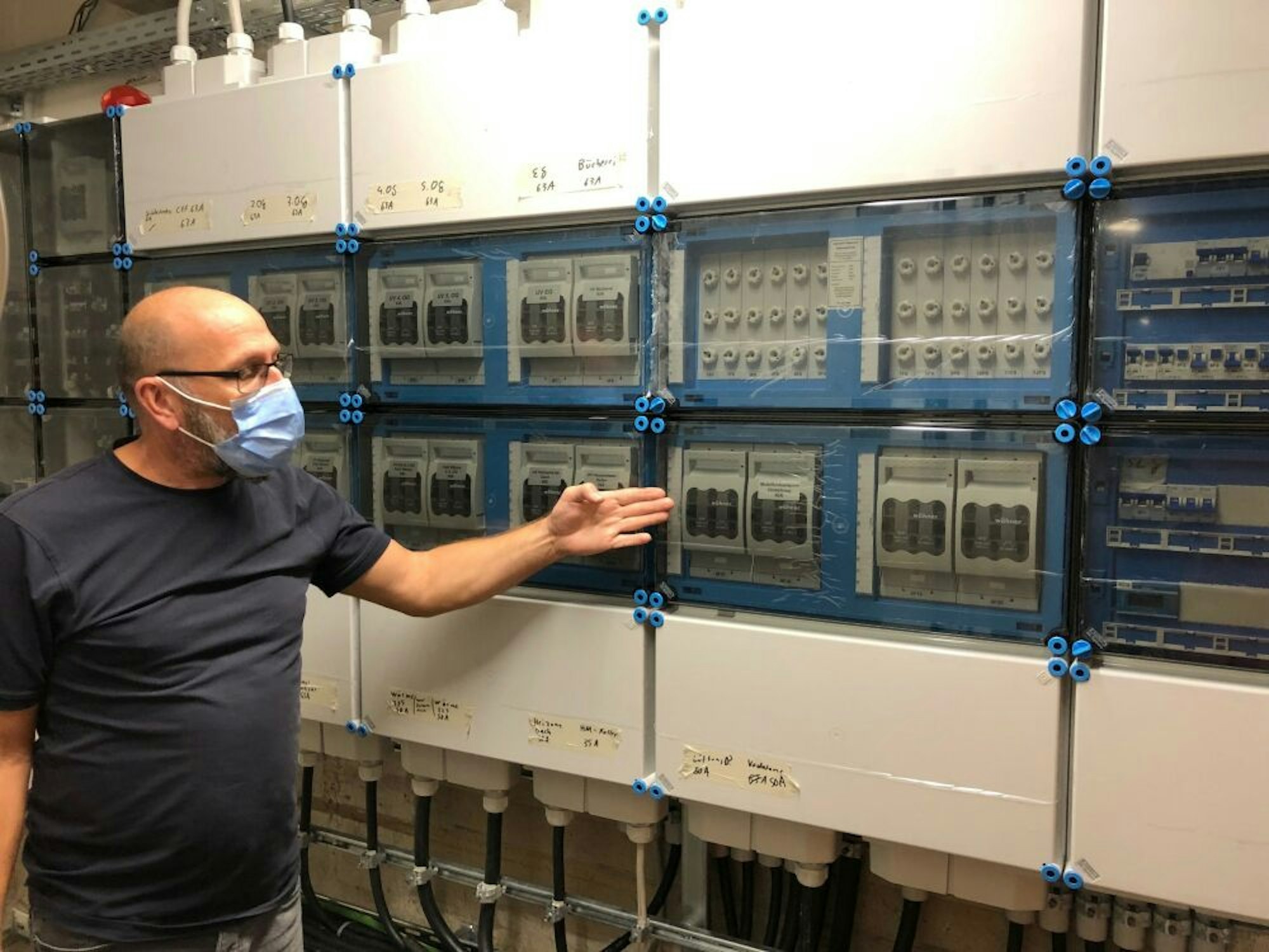 Martin Schmidt an der Stromversorgung des Rathauses, die bei der Flut komplett unter Wasser stand.