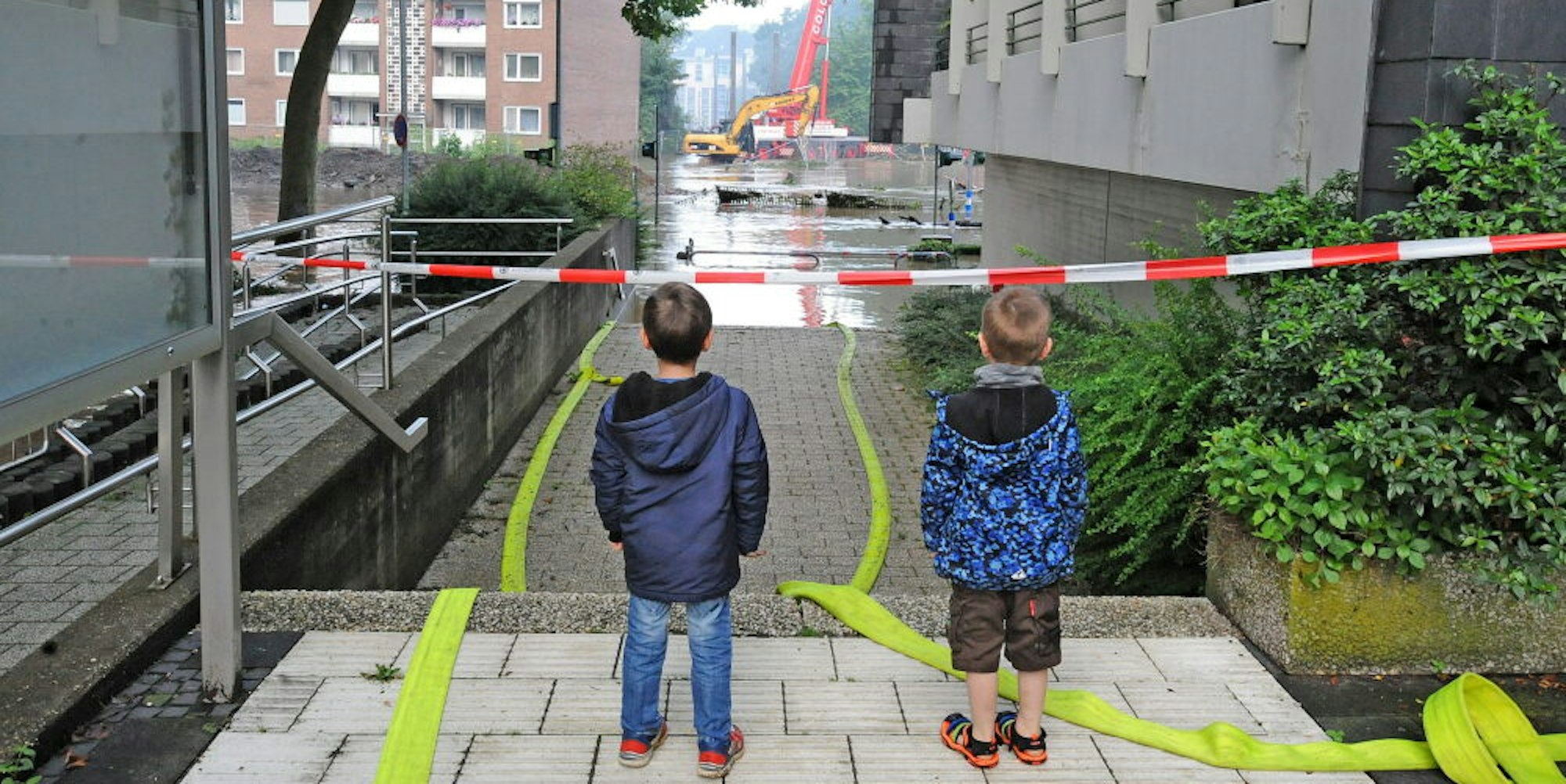 Am Morgen danach sank der Pegel der Wupper. Das Rathaus stand nachts im Keller und Tiefgeschoss unter Wasser.