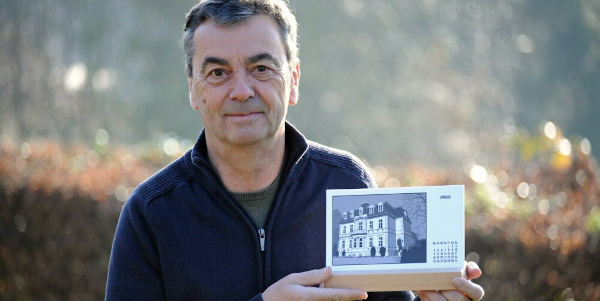 Schuch kommt aus der Architektur und hat sich im letzten Jahr mit Leichlinger Baukunst beschäftigt. Irgendwann kam ihm die Idee, daraus ein kleines, lokales Projekt zu machen. Aus den gesammelten Skizzen und Bildern sollte ein Kalender entstehen. Früher habe es in Leichlingen historische Kalender gegeben, doch der Künstler für diese sei verstorben. Nun hofft Klaus Schuch, diese Lücke ein wenig füllen zu können. Die Leichlinger kennt er als Lokalpatrioten und hofft, dass sein Kalender gut ankommt.