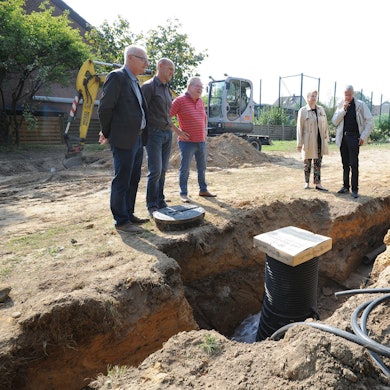 Neben der Schule steht ein Fertig-Bungalow für eine Kita-Gruppe, in dem von der „Quelle“ seit dem Frühjahr bereits 22 Kinder betreut werden. Sie können umziehen und das für zwei Jahre gedachte Provisorium wird beseitigt, wenn der Neubau fertig ist.