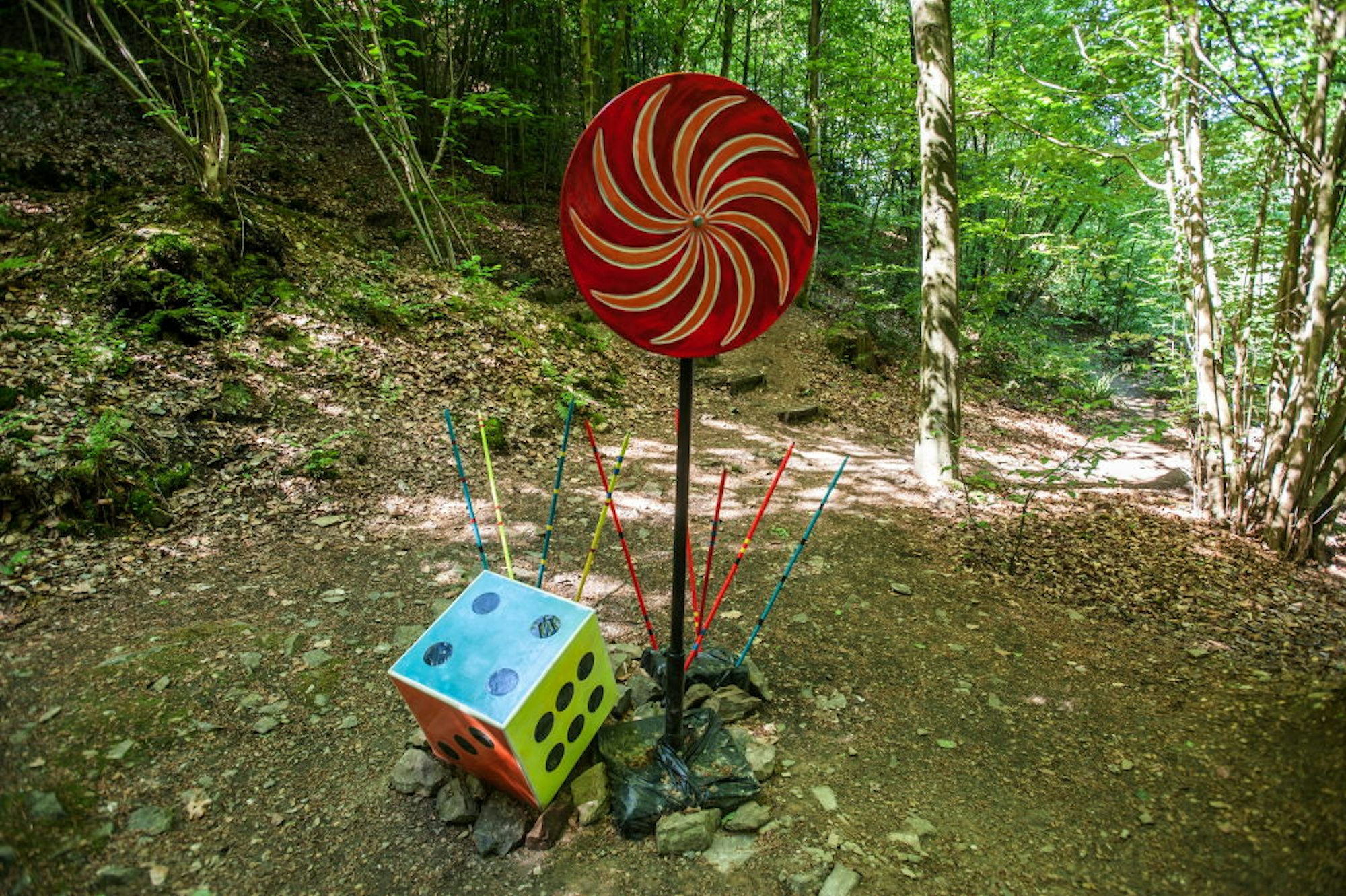 Zwei Stunden Zeit sollte man sich nehmen, wenn man alle versteckten Pfade erforschen will. An einer ausgequetschten Ölfarbentube von Hartmut Hegener kann man darüber sinnieren, ob etwas schon halbleer oder noch halbvoll ist. An Thomas Siefers Baummobiles überlegen, welche Farbe das Gück hat.
