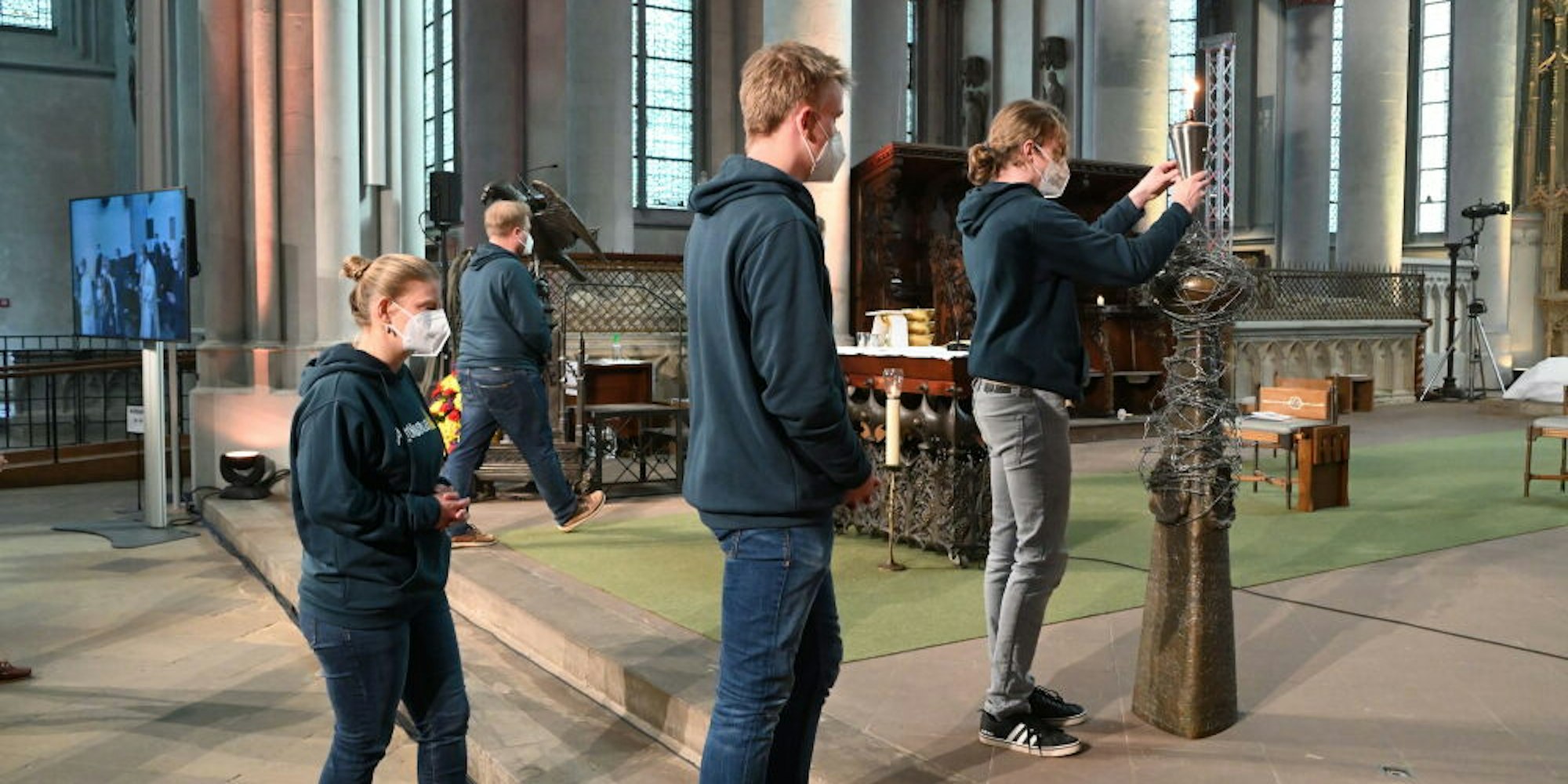 Die Sehnsucht nach einer Zeit ohne Maske bestimmte auch die Predigt von Pfarrer Tobias Schwaderlapp. Er sprach über Tiefpunkte und Sternstunden der Gotteserfahrung und den Auftrag der Kirche. Mit Blick auf Missbrauchsskandal und Kirchenkrise sagte er: „Dem Zeugnis, das müssen wir nüchtern anerkennen, werden wir im Moment nicht gerecht.“ Das Altenberger Licht kann auch jetzt noch im Dom abgeholt werden.