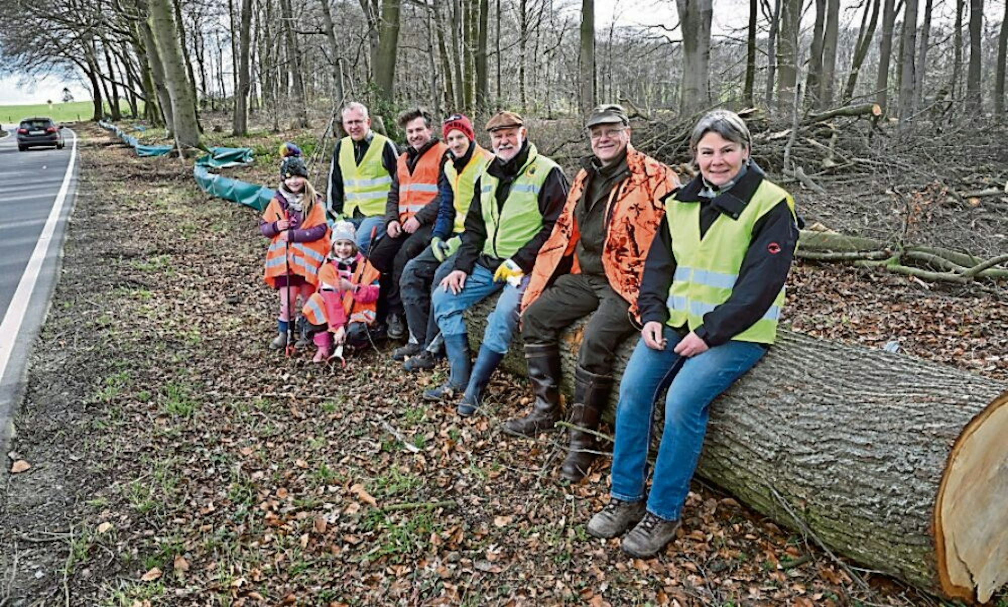 Ein starkes Team: Die Naturschützer nach getaner Arbeit an der Landstraße.