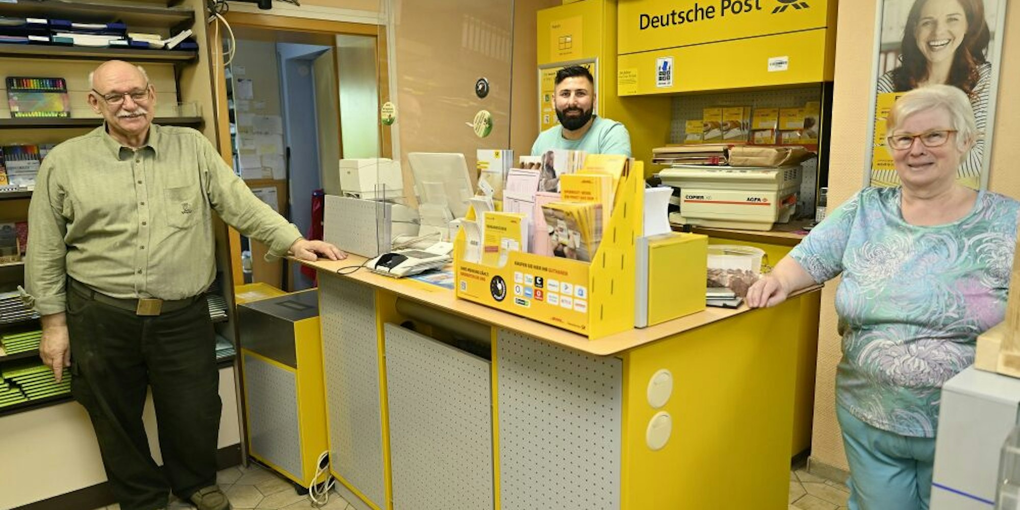 Gabriele und Hans-Jürgen Rodenbach (links) sind glücklich, dass sie mit Okan Üstün einen Nachfolger für ihren Schreibwarenladen und die Poststelle in Blecher gefunden haben.