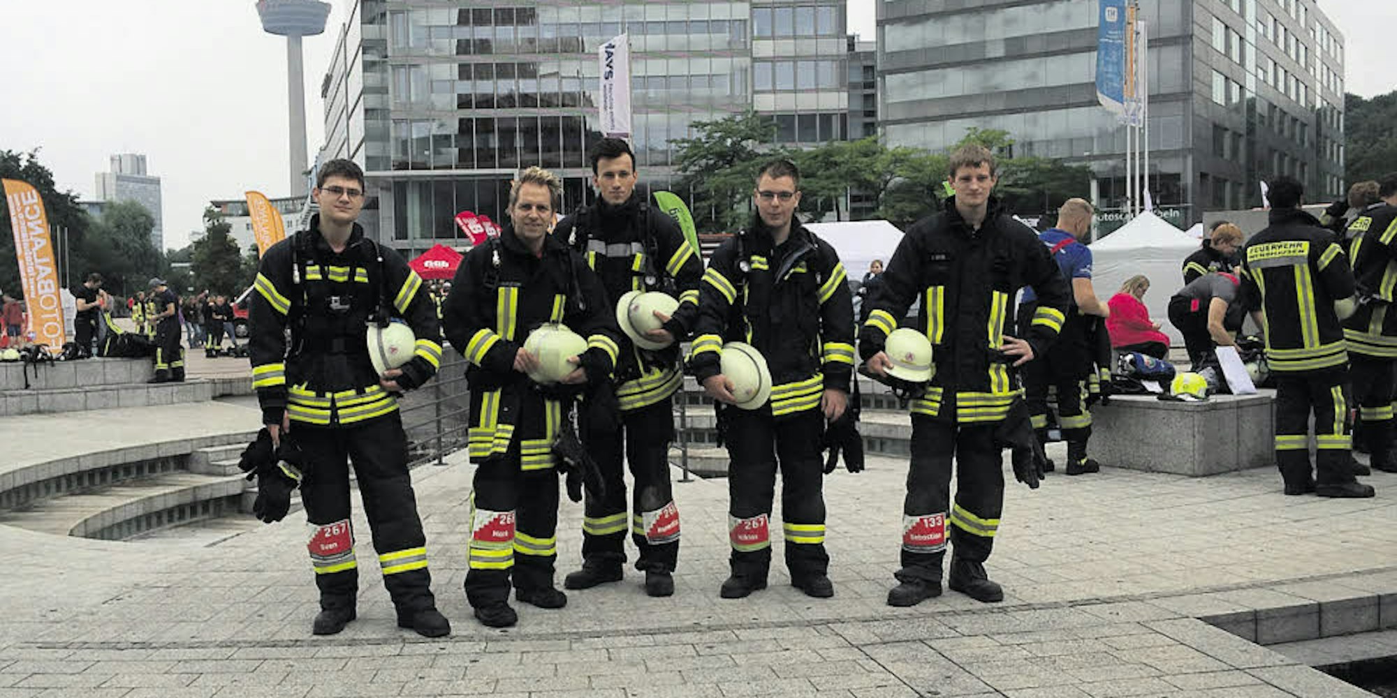 Odenthaler Feuerwehrleute700 Stufen hoch in voller Montur beim Kölner Treppenlauf