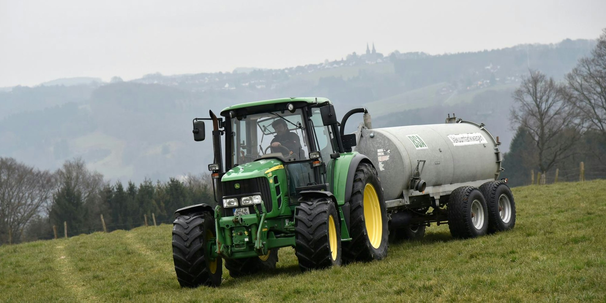 Auch das gehört zur Geräuschkulisse des Landlebens: Trecker auf dem Feld im Bergischen Land.
