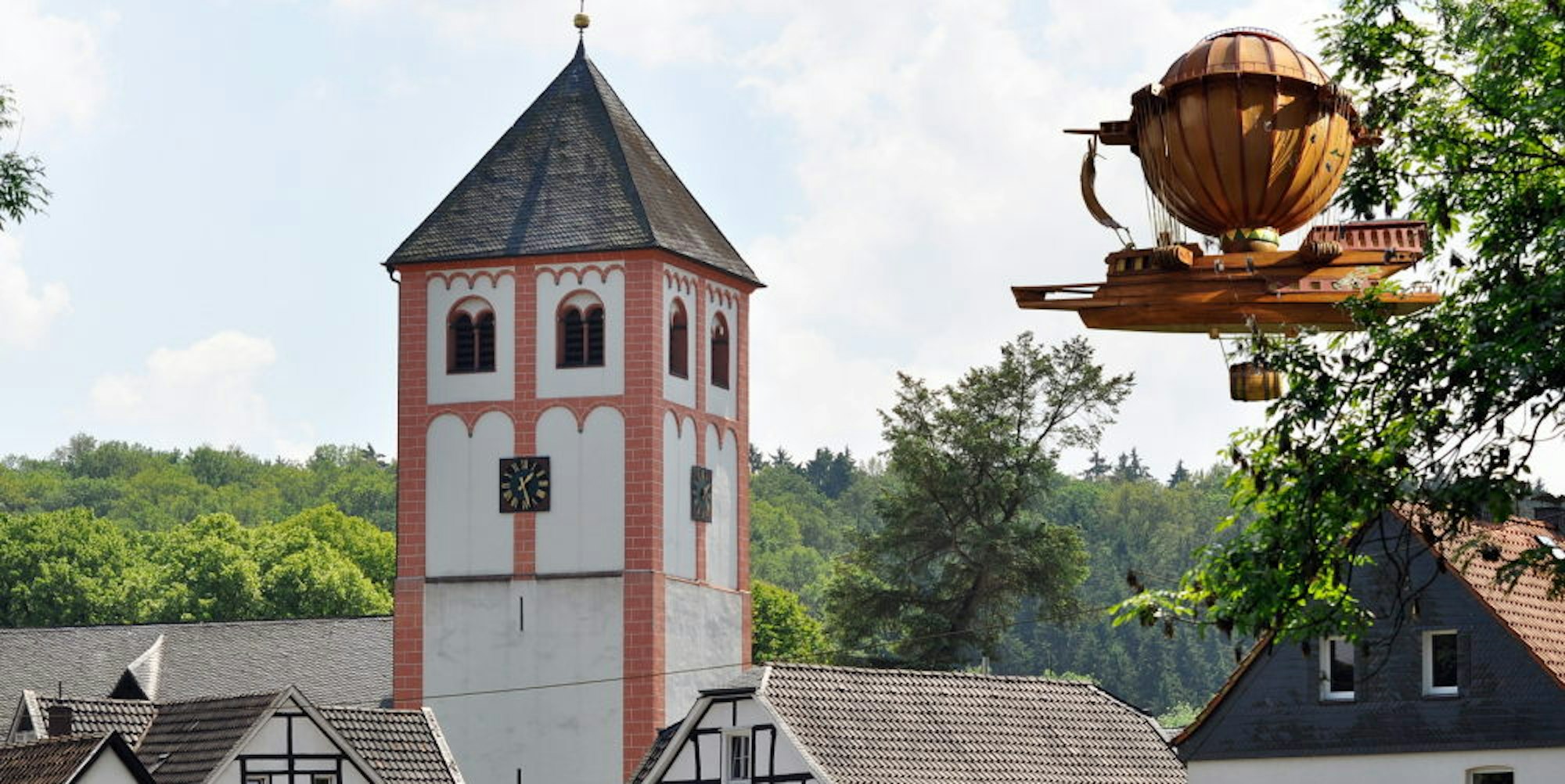 Jule Vernes Luftschiff über Odenthal: Das seltene Ereignis wurde möglich, durch die Modellbaukunst von Günter Blömer und eine geschickte Fotomontage.