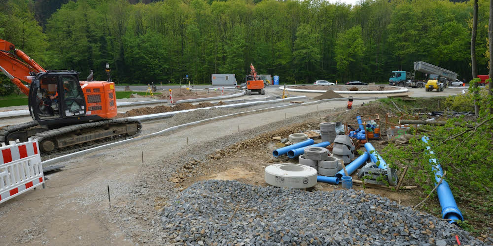 Odenthal – Der Bau des Kreisverkehrs Am Funkenhof macht Fortschritte. Nach Auskunft des Landesbetriebs Straßenbau NRW ist die erste Bauphase mittlerweile fast abgeschlossen, der Kreisverkehr ungefähr zur Hälfte fertiggestellt. Dazu gehören die Mittelinsel und die Einmündung der Kreisstraße Richtung Neschen.