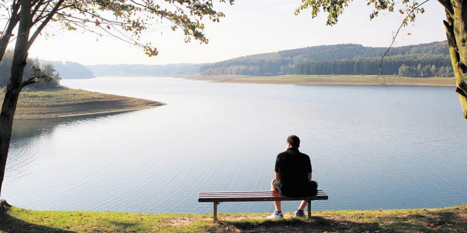 Vom Staudamm der Vorsperre Große Dhünn bei Kürten-Hutsherweg lässt sich am Rande der Dhünntalsperre der Sonnenuntergang genießen. Zu erreichen ist dieser reizvolle Genuss-Ort in einem viertelstündigem Fußmarsch vom neu gestalteten Wanderparkplatz „Reisegarten“ in Hutsherweg aus.