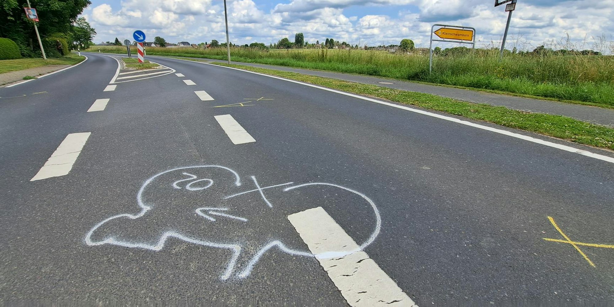Hier blieb das Fahrrad des 22-jährigen beim Zusammenstoß mit einem aus Kleinschwamborn kommenden Pkw liegen.
