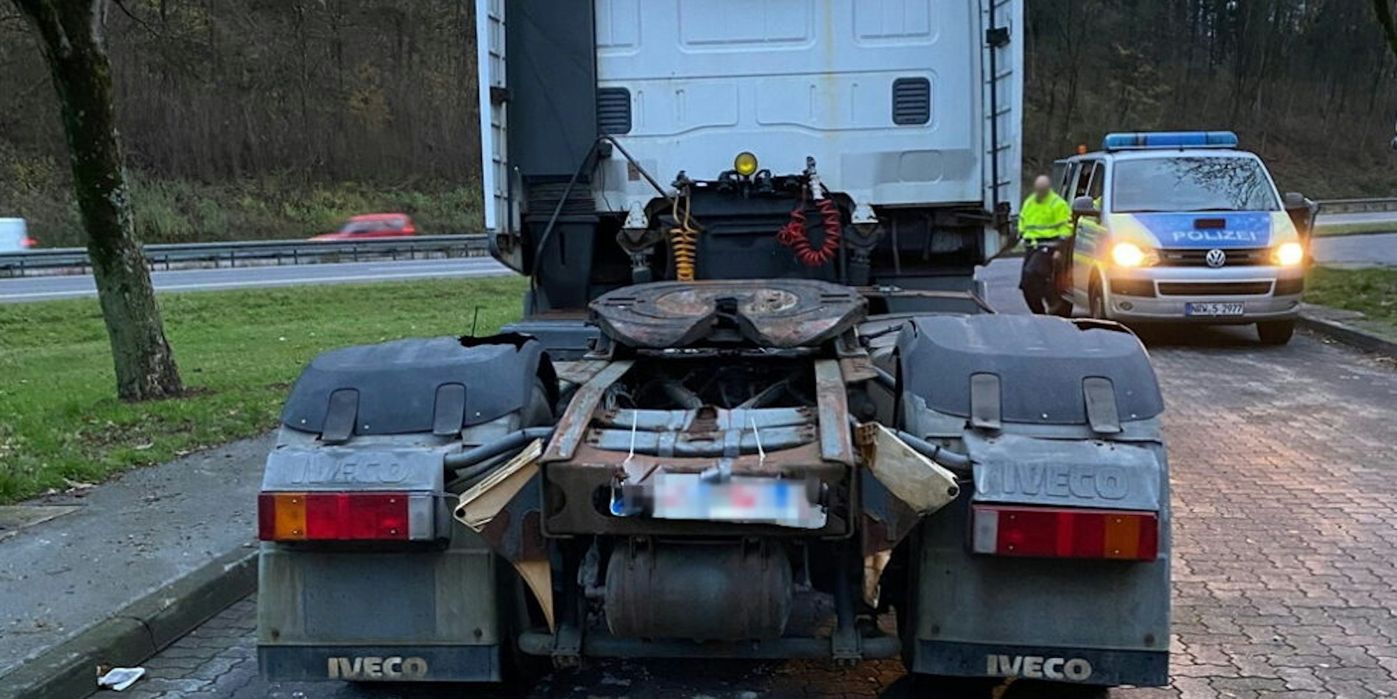 Vor Mängeln strotzte laut Polizei nicht nur der Fahrzeugrahmen des Sattelschleppers.