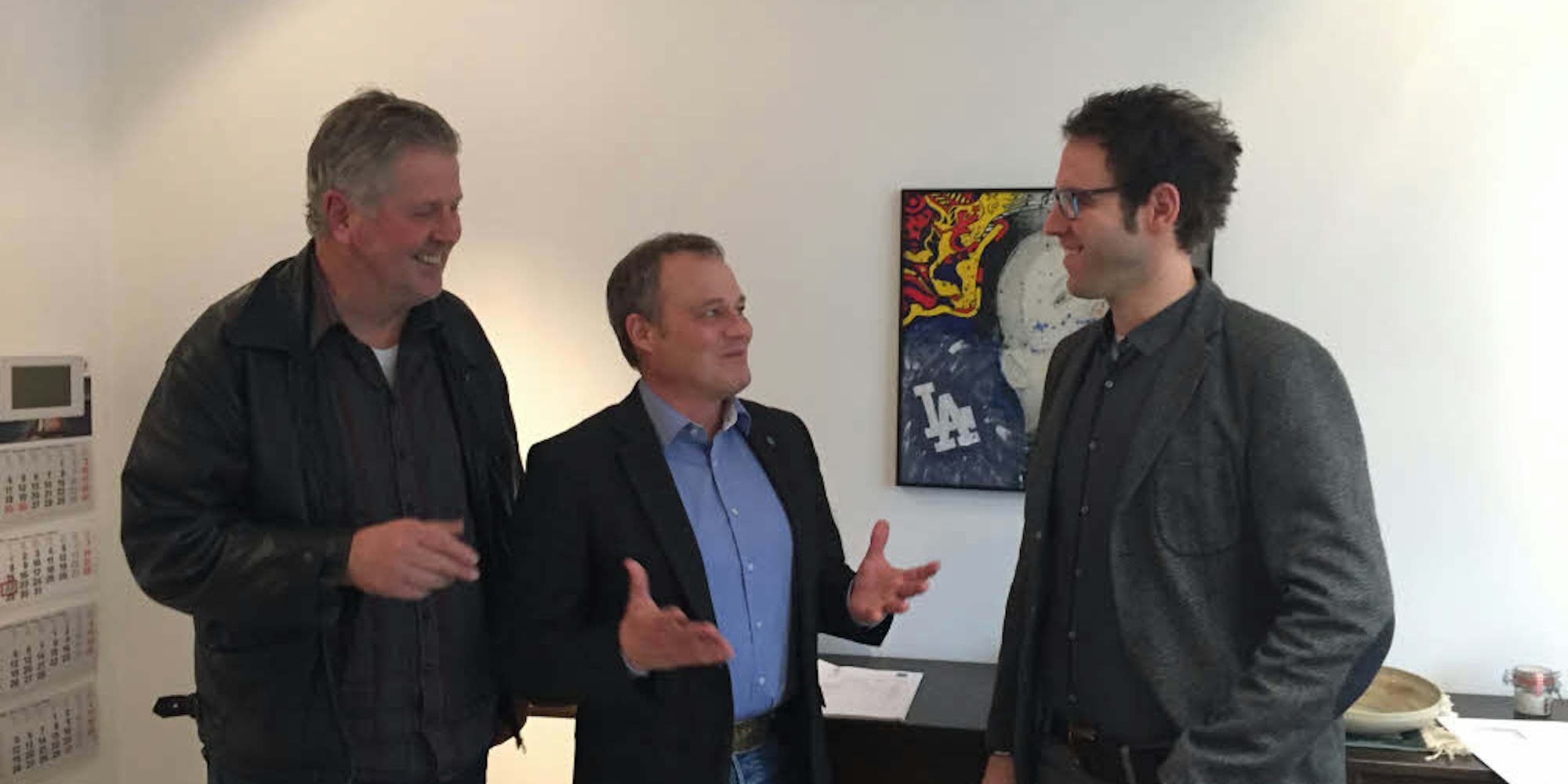 Die Chefs der Stadtentwicklungsgesellschaft Overath (Sego), Wolfgang Bürger (l.) und Christoph Schmidt (r.) mit Jörg Weigt.