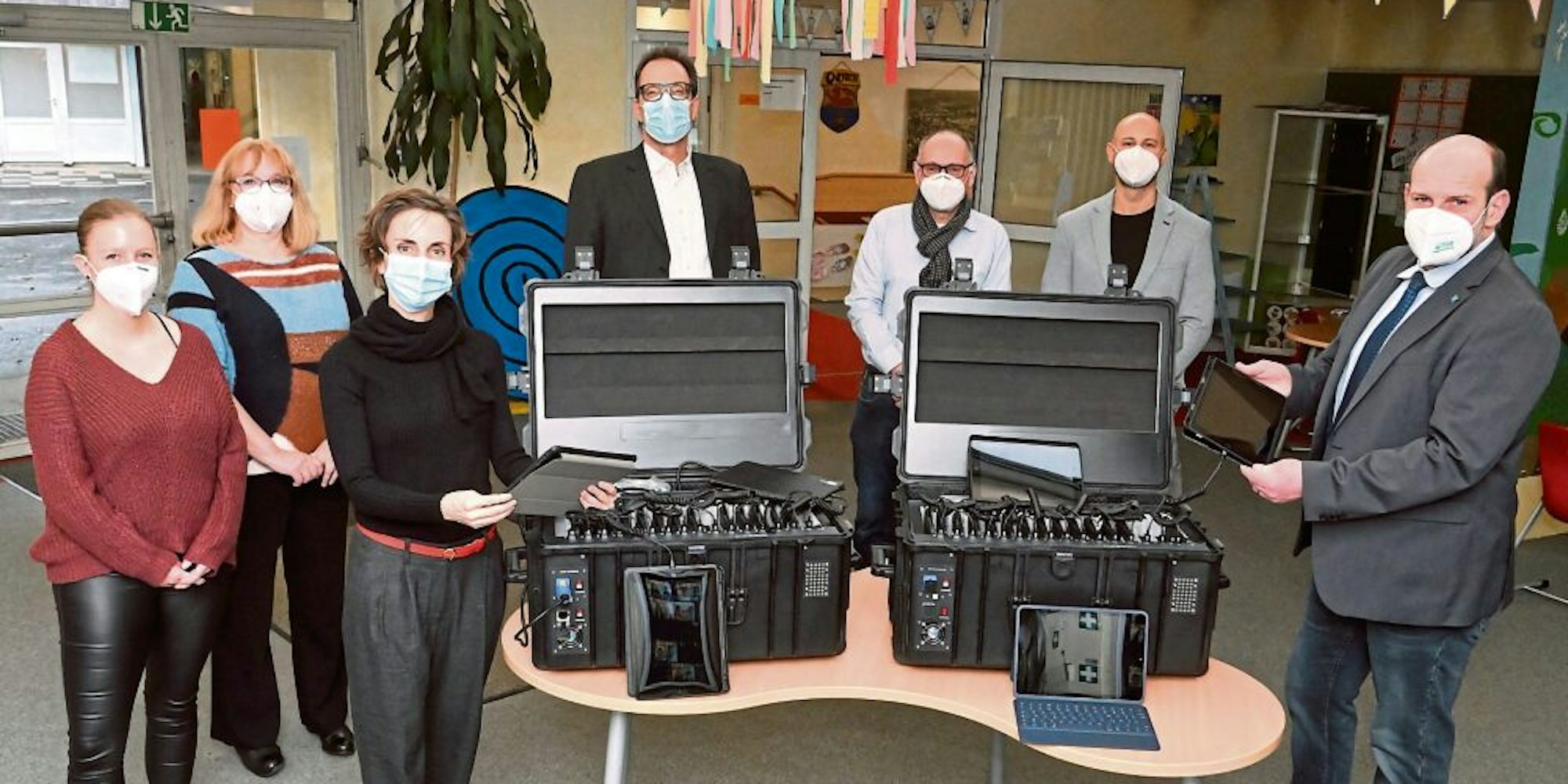 Overath – Lockdown die Zweite: Die Schulgebäude sind noch mindestens bis 11. Februar geschlossen, in die Rathäuser geht man am besten nur virtuell via Internet und zu feiern gibt es kurz vor Weiberfastnacht auch wenig. Außer in Overath: Dort sind fast 500 iPads für Schülerinnen und Schüler angekommen, und außerdem noch mal gut hundert Laptops und iPads mit Extra-Tastaturen für die Lehrerinnen und Lehrer.