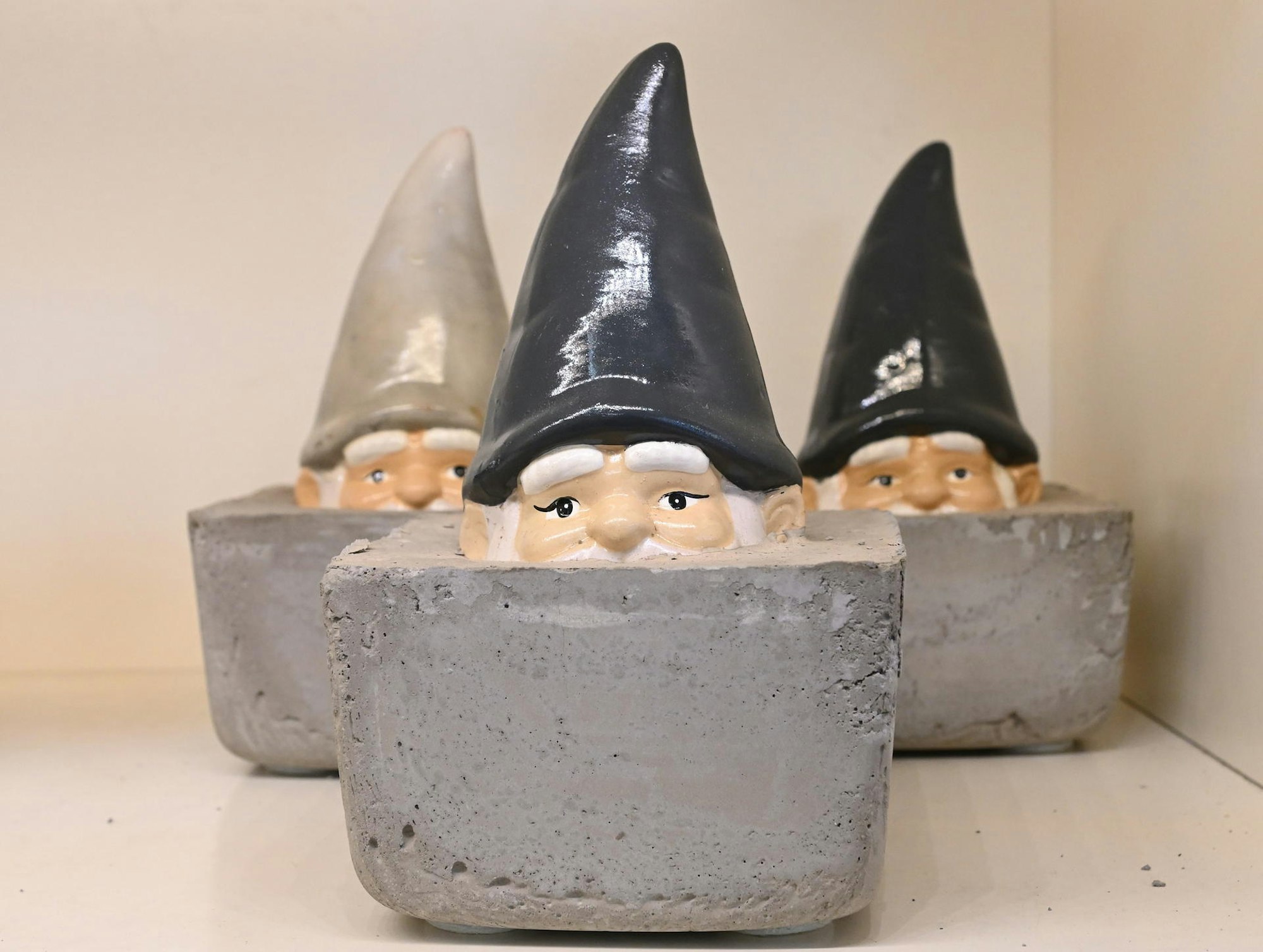 Bert Nowotny fertigt ungewöhnliche Schneidebretter. Im Ladenlokal der drei Künstler gibt es auch Zwerge und Puppen an Fleischerhaken.