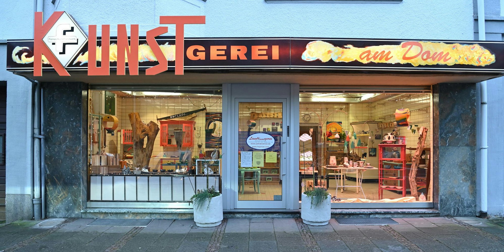 Die „Bergische Kunstgerei am Dom“ residiert in einer früheren Fleischerei – die Wandfliesen geben besonderes Flair.