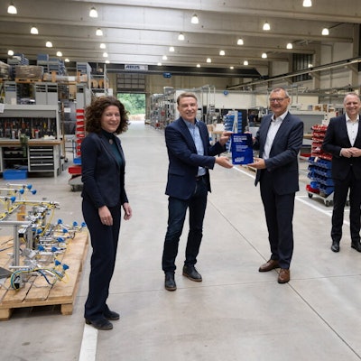 Geschäftsführerin Ulla Thönnissen hat die Auszeichnung gemeinsam mit Kreisdirektor Dr. Erik Werdel und Volker Suermann, Geschäftsführer der Rheinisch-Bergischen Wirtschaftsförderungsgesellschaft (RBW) dem Soennecken-Vorstandsvorsitzenden Dr. Benedikt Erdmann überreicht.