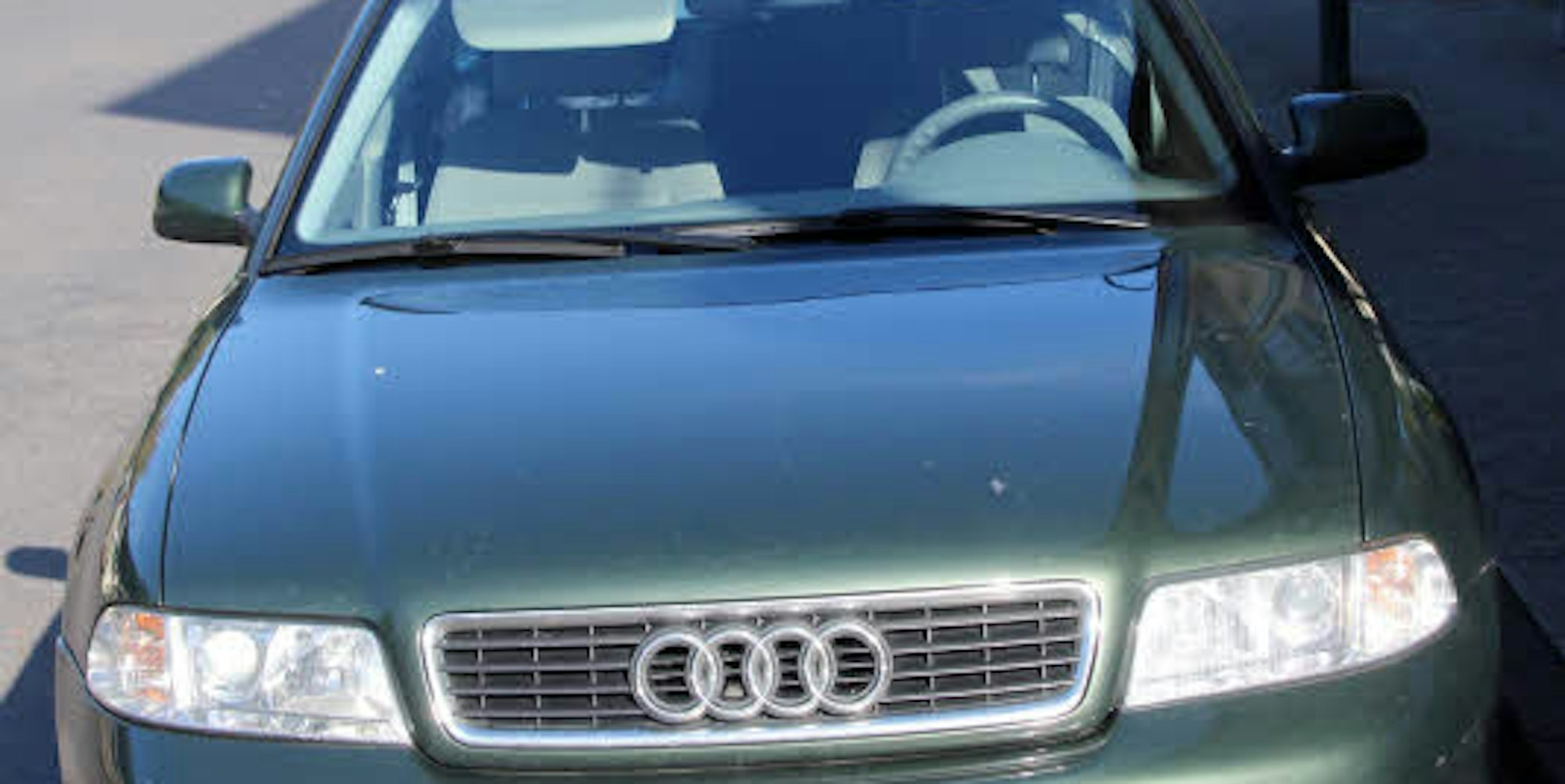 Ein parkendes Fahrzeug ohne Plakette am Bahnhof.
