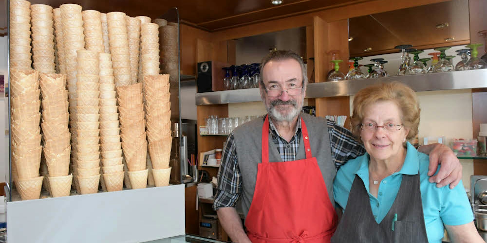 Seit 50 Jahren beglücken sie die Overather mit ihrem selbst gemachten italienischen Eis: Otello und Silvia Meneghetti.