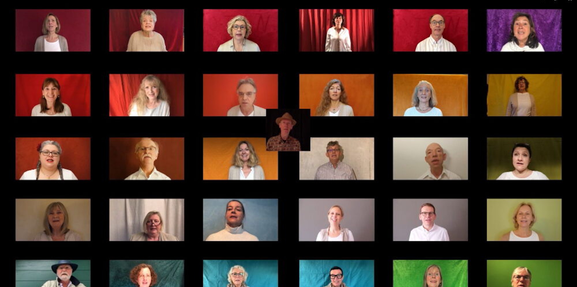 Virtuelles Stimmtraining und Kontaktpflege: Screenshot von der Videoaufnahme der Chormitglieder von O-Ton Overath.