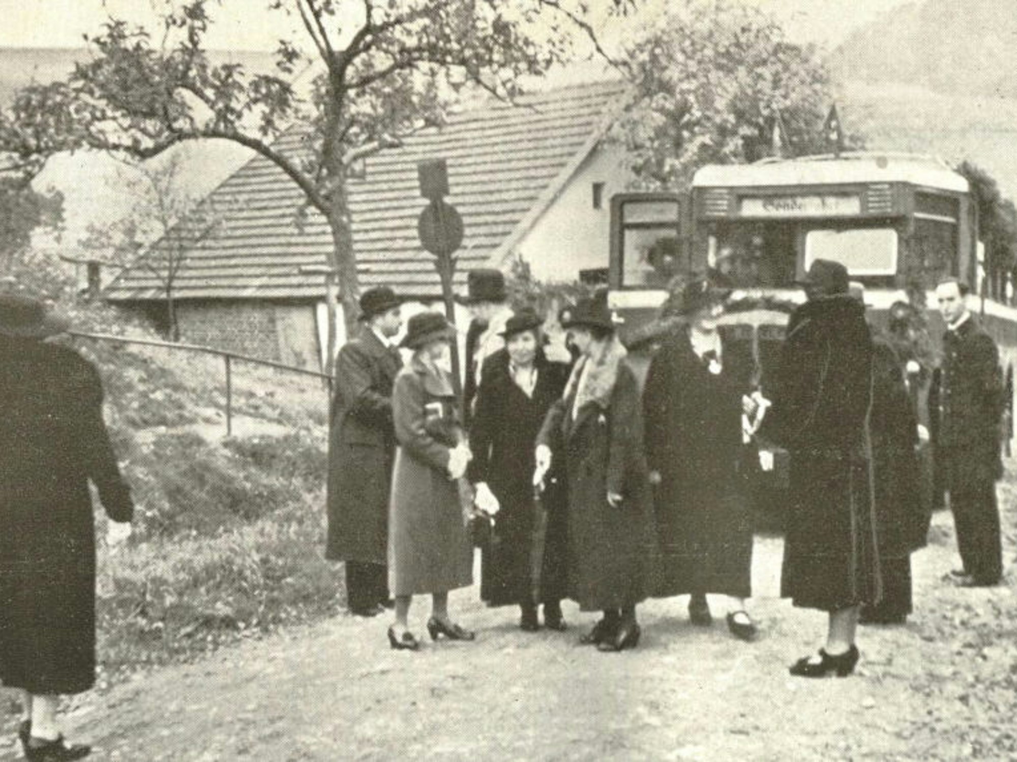 Bilder aus der Mitarbeiterzeitschrift, hier die Feier der Silberjubilare von Oktober 1937. Postbusse brachten sie von Köln nach Overath.