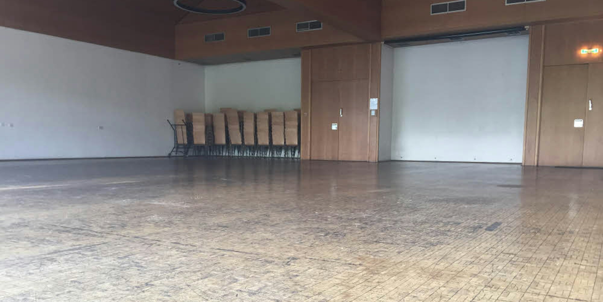 Weil das Parkett kaputt ist, wurde der Saal gesperrt.
