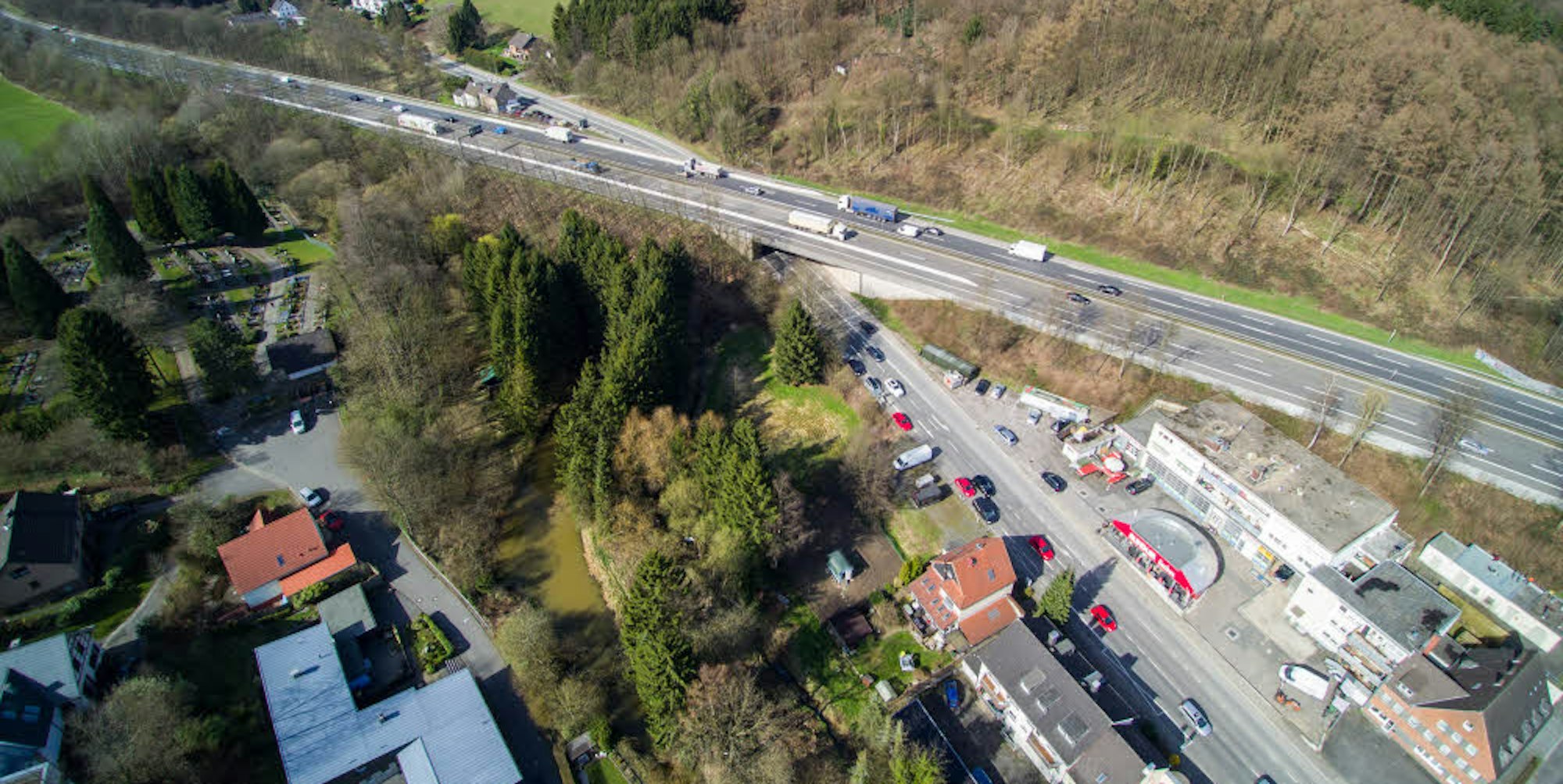 Unter der L 136 verläuft die Gasleitung „L 21“ von Bergisch Gladbach nach Gummersbach- Derschlag. Sie hat einen Durchmesser von einem Meter und kann mit einem Druck von bis zu 25 bar betrieben werden, wie Thyssengas-Sprecher Gerhard Hülsemann mitteilt. Sollte sie einem Brückenneubau im Weg sein, könne sie verlegt werden; dies sei nicht ungewöhnlich. (sb)