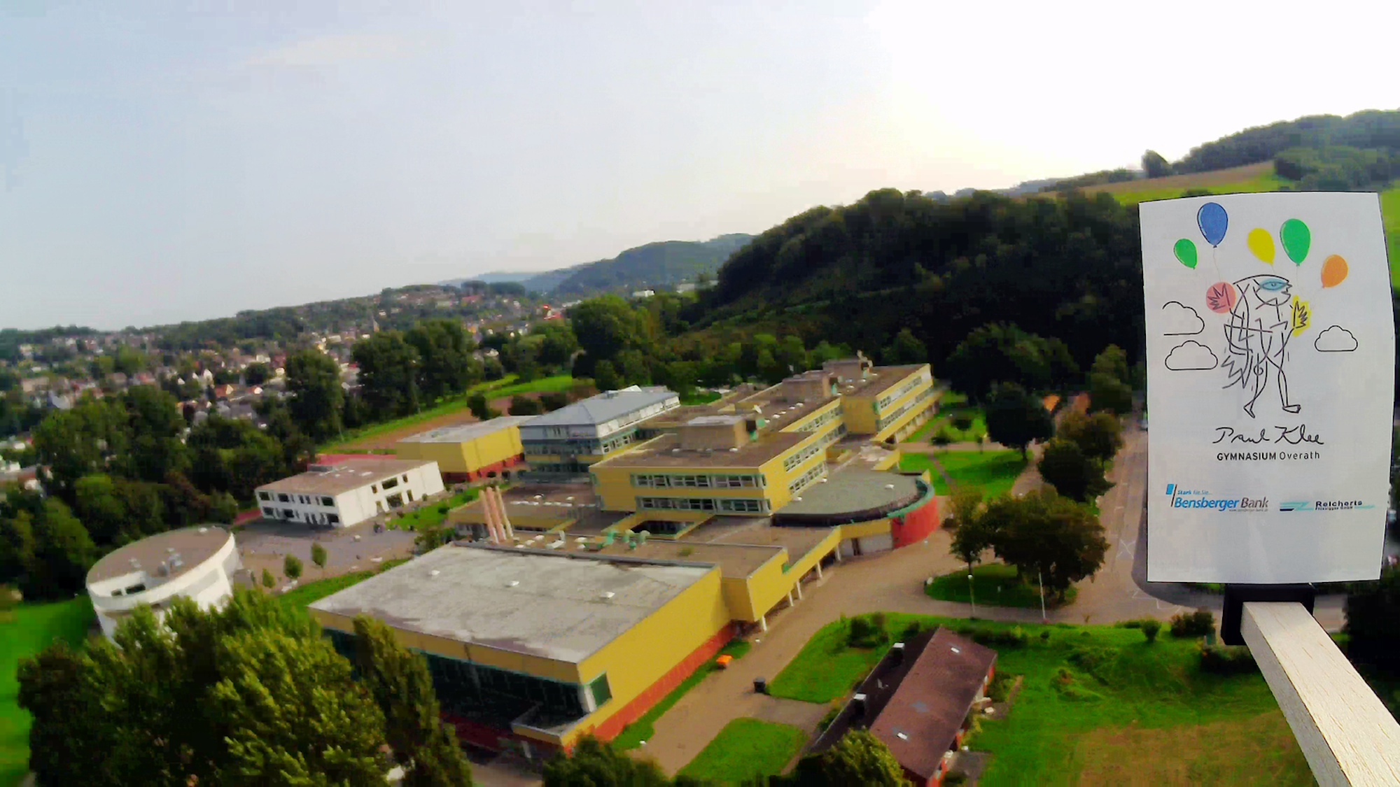Kurz ist zu Beginn des Wetterballon-Flugs das Overather Paul-Klee-Gymnasium zu sehen, dann geht es hinauf bis in fast 38 Kilometer Höhe.