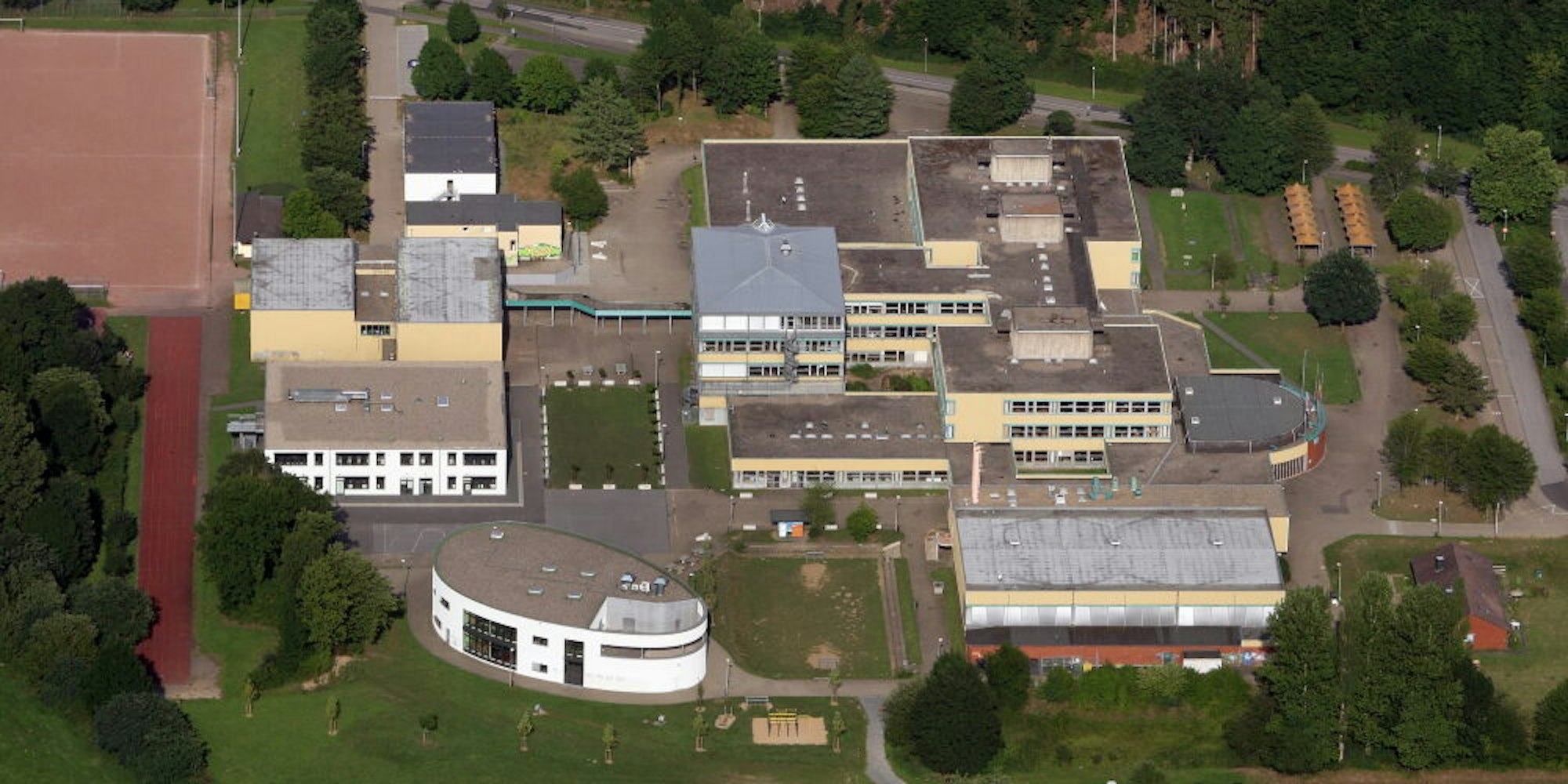Das Schulzentrum Cyriax mit der ovalen Mensa.