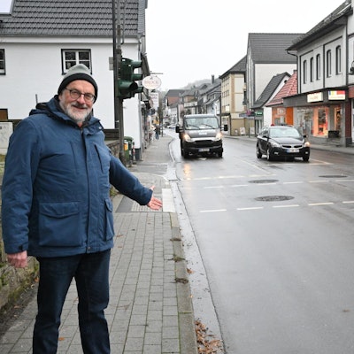 Ein neues Rückhaltebecken an dieser Stelle der Hauptstraße soll die Hochwasserfluten des Katzbachs bändigen.