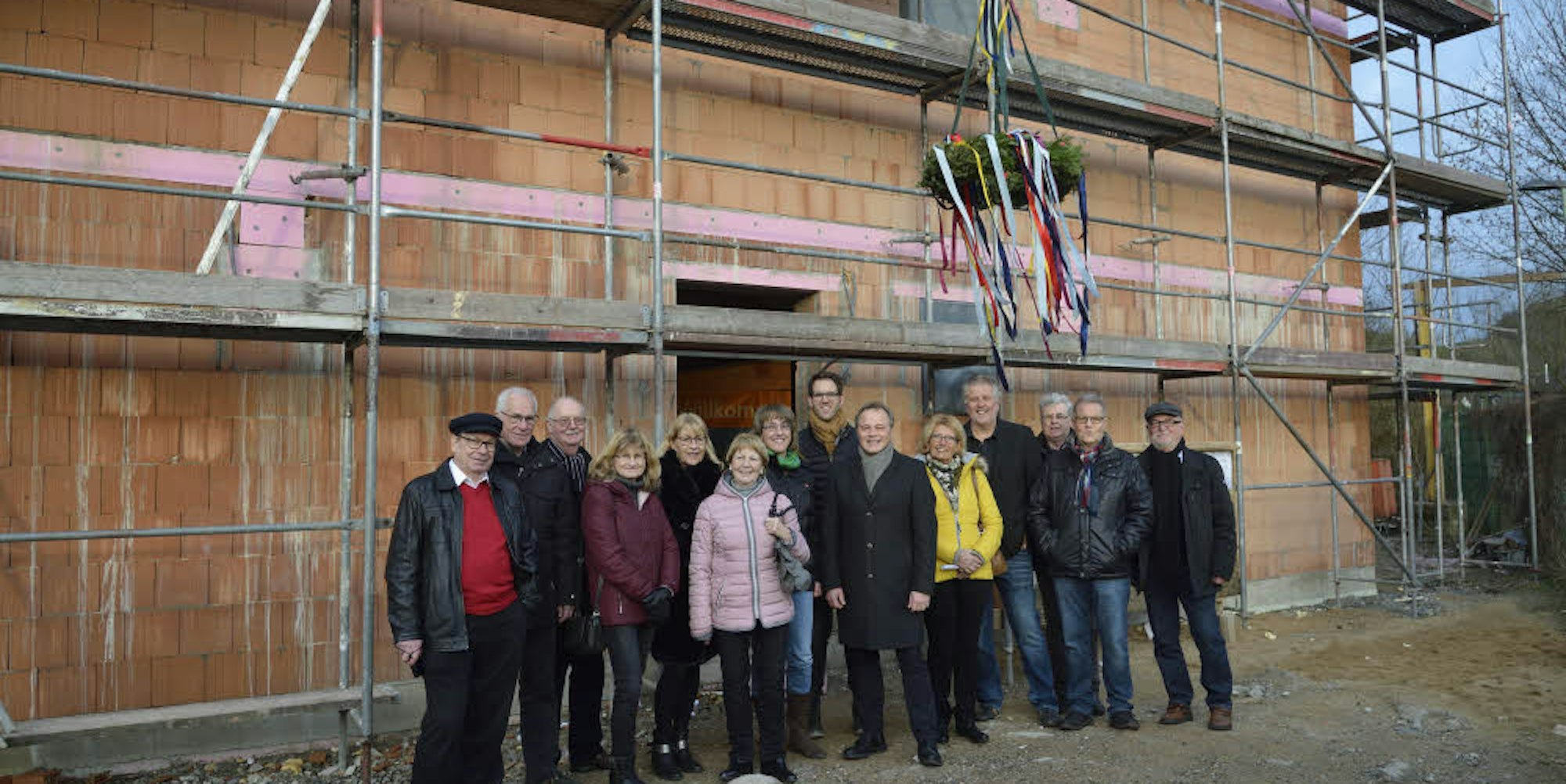 Zum Richtfest des neuen „Multifunktionsgebäudes“ zwischen Bahnlinie und Agger kamen vergangene Woche Vertreter von Stadtverwaltung und der Stadtentwicklungsgesellschaft sowie aller fünf Ratsfraktionen.